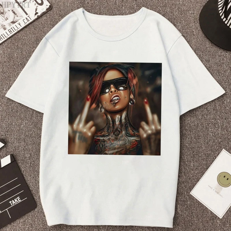 Футболка женская с коротким рукавом, крутая Модная рубашка с принто...