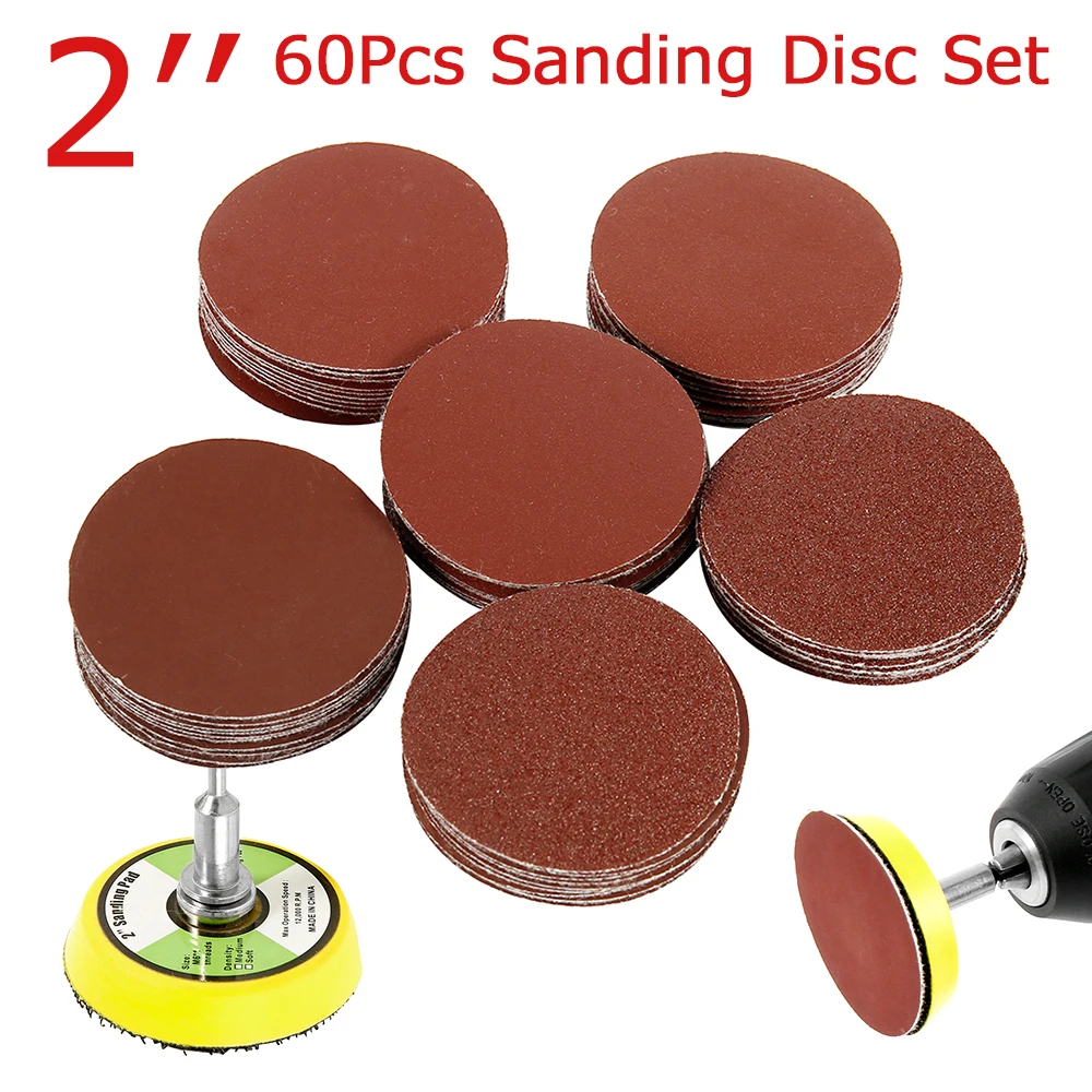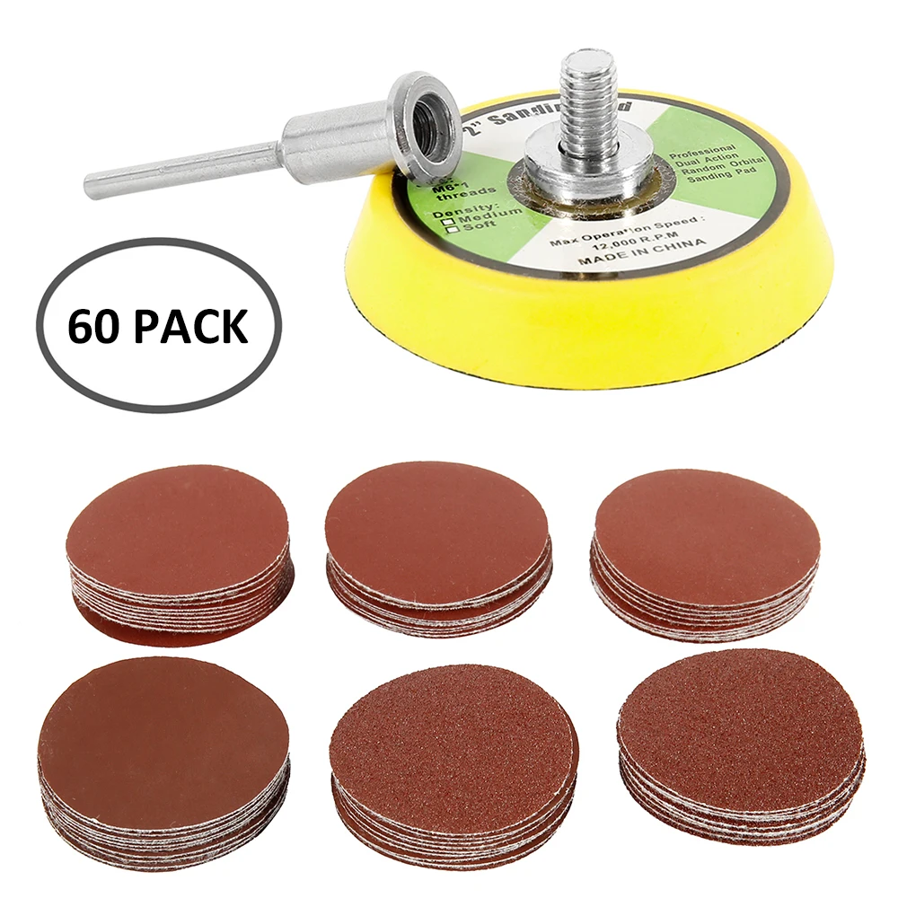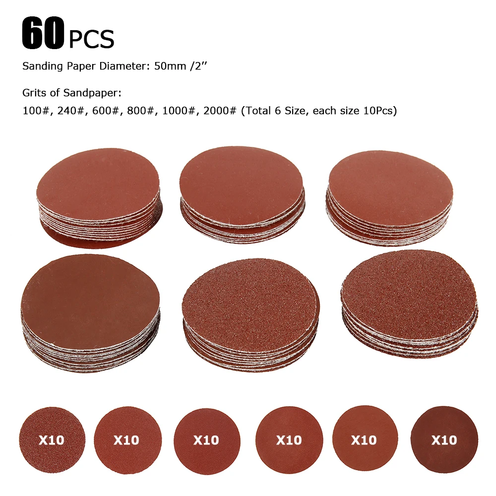 Набор шлифовальных дисков 10024060080010002000 Grits, 2 дюйма, 50 мм, с петлей и хвостовиком 3 мм, 60 шт.