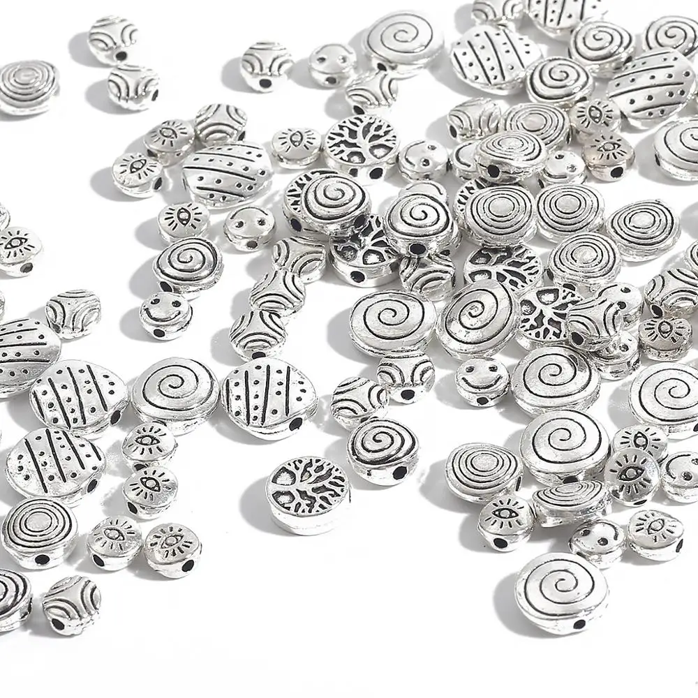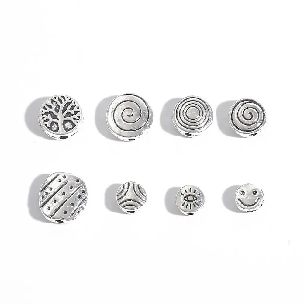 Модные новые 20-50 штпакет диаметр 6-10 мм плоские круглые бусины из сплава амулеты античные посеребренные бусины для изготовления ожерелья своими руками