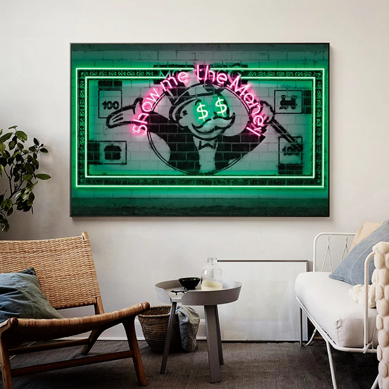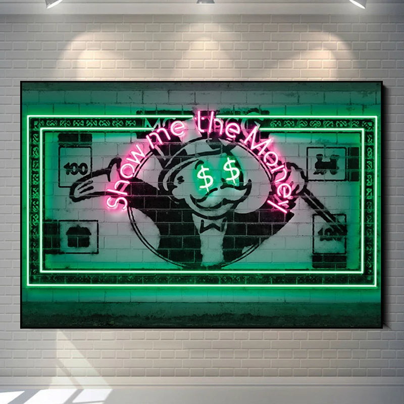 Картина на холсте с изображением граффити на улице, постеры с надписью Покажи мне деньги и принты, Настенная картина для гостиной, домашний декор