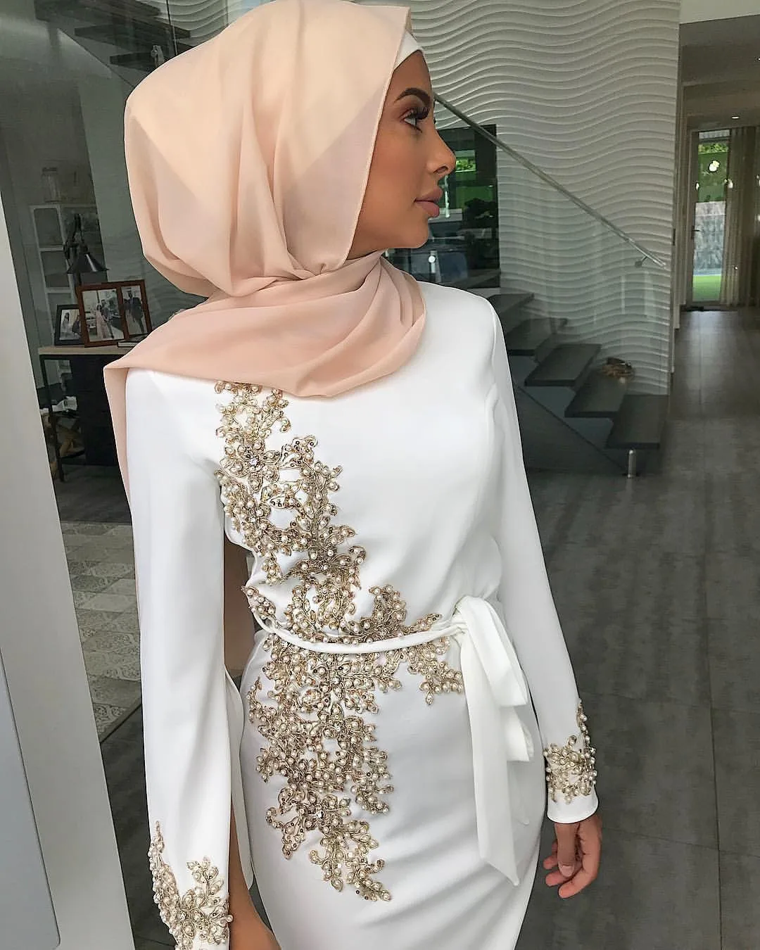 Модное мусульманское женское облегающее платье с аппликацией абайя ...