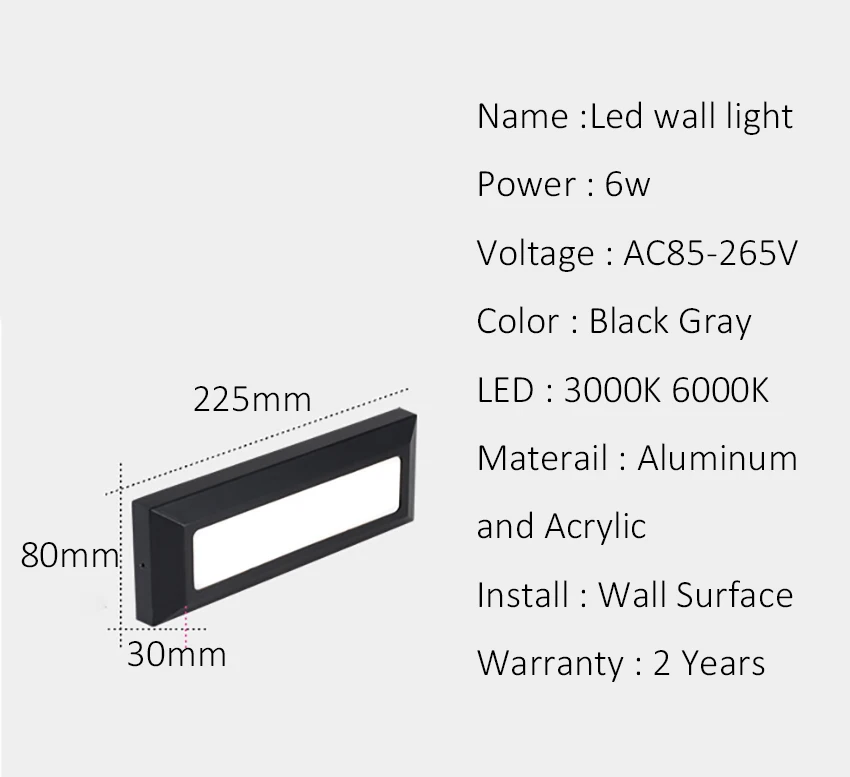 Квадратный 6 Вт 12 Вт уличный светодиодный светильник для лестницы,...