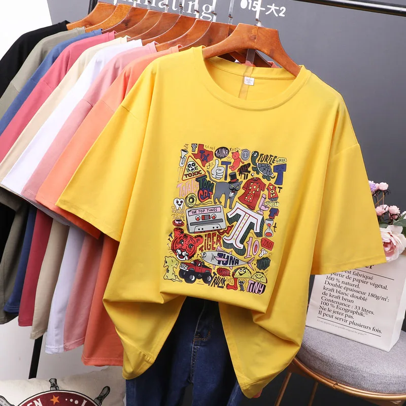 Футболка женская оверсайз с коротким рукавом, топ свободного покроя в стиле Харадзюку, большие размера плюс 5XL 6XL 7XL 40-150 кг, на лето