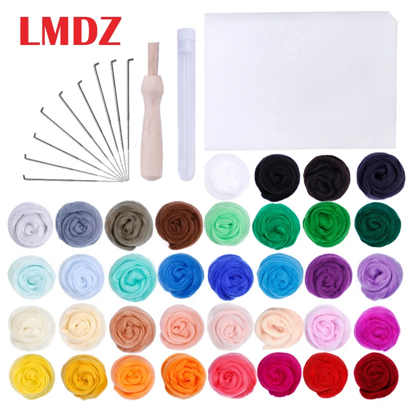 LMDZ Игла diy для валяния стартовый комплект 36 Цвета, 3g, с функцией шерстяного волокна ручные инструменты набор войлока для макияжа с деревянными ручками волокна комплект для Игла diy работы