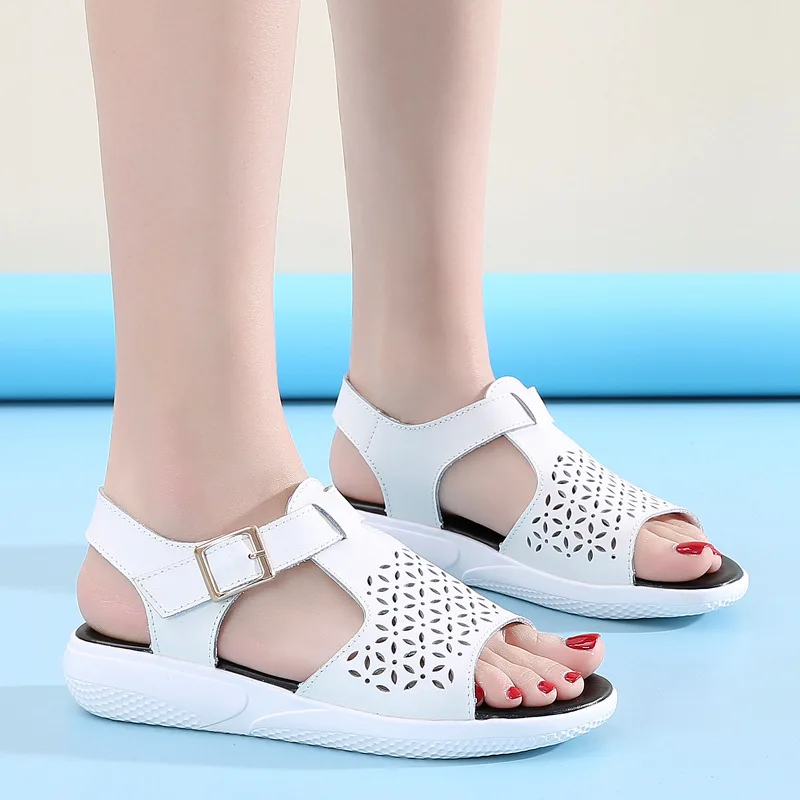 Сандалии PEIPAH женские из натуральной кожи, босоножки на платформе, с перфорацией, плоская подошва, однотонные Спортивные Тапочки, с открытым носком