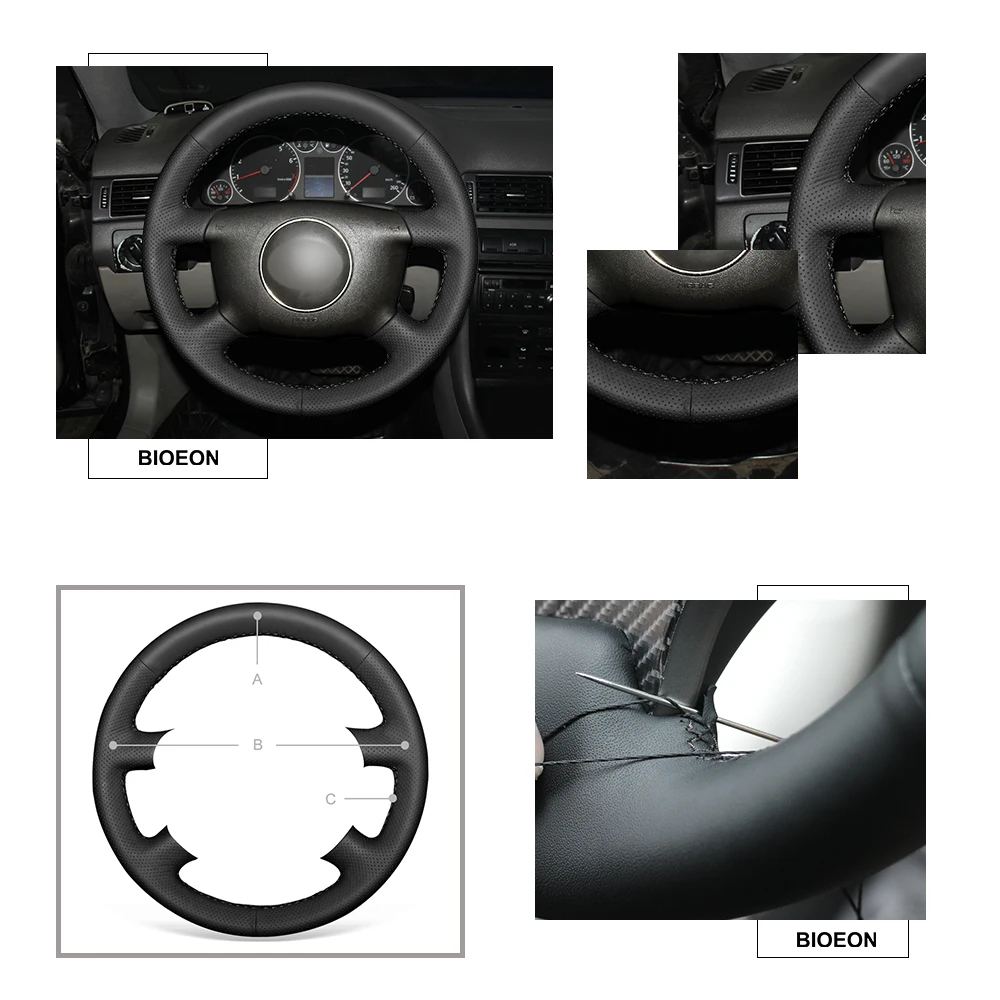 Вышитая вручную черная искусственная кожа для Audi A2 (8Z) A3 (8L) Sprotback A4 (B5 B6) Avant A6 (C5) A8