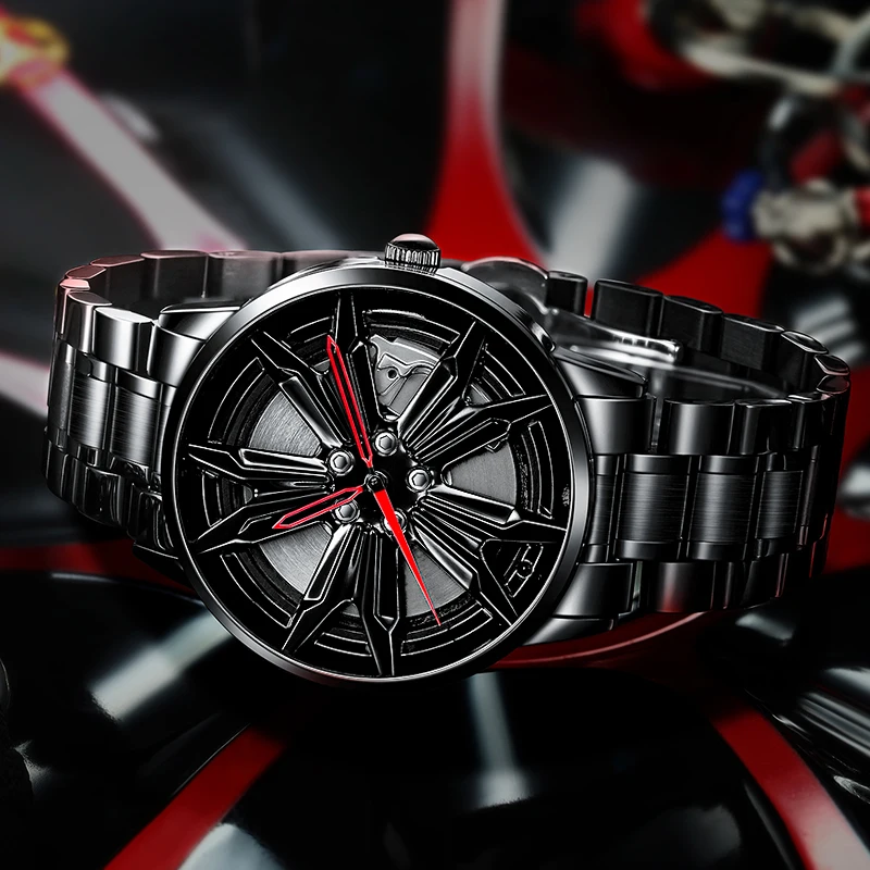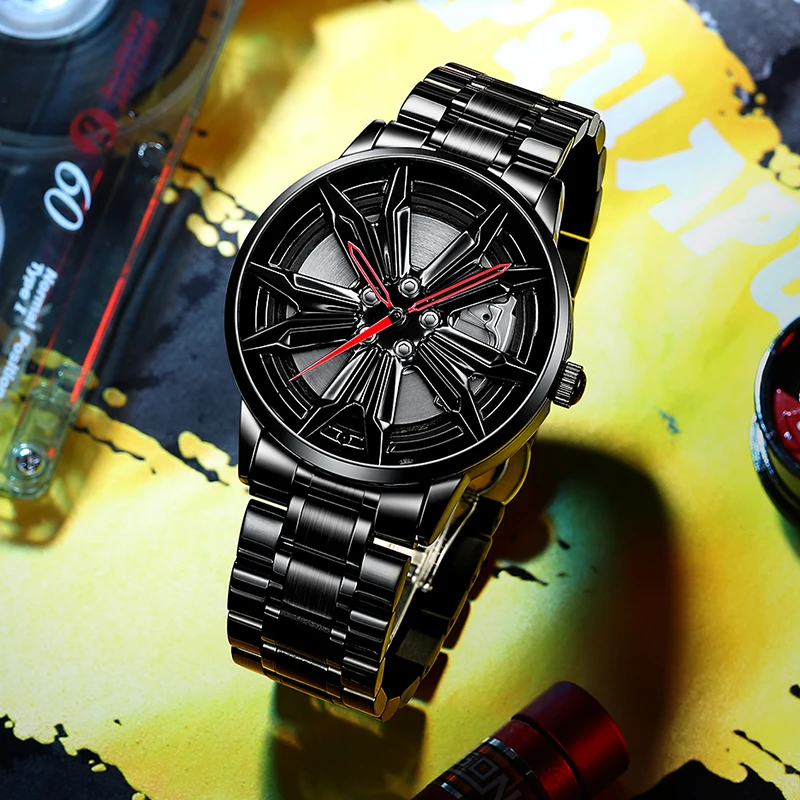 Часы наручные NIBOSI мужские спортивные, водонепроницаемые красные дизайнерские со ступицей для колес, креативные
