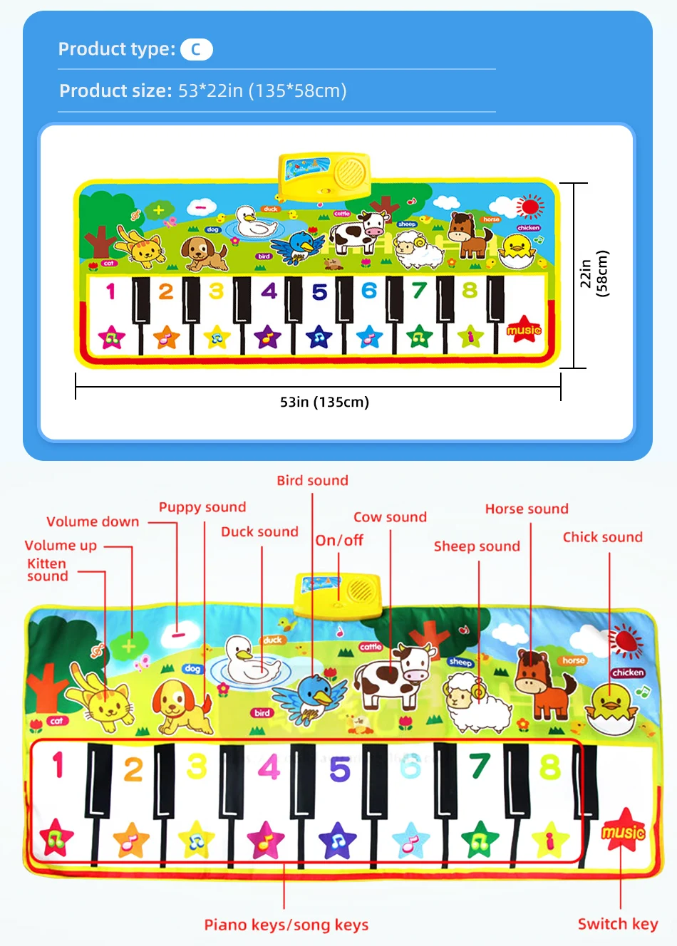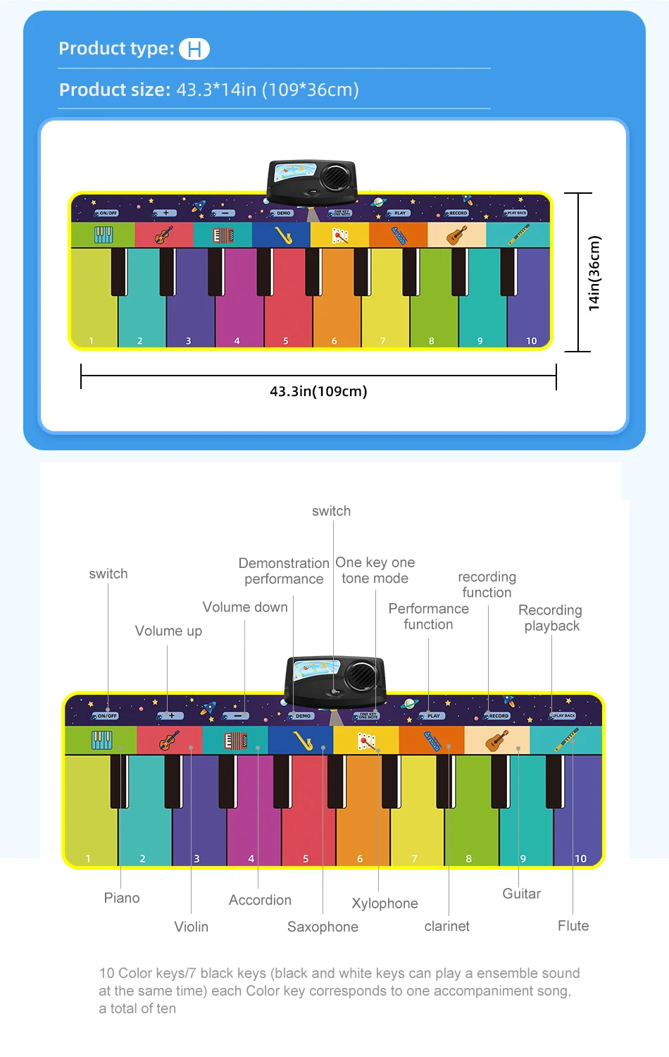 Детский музыкальный коврик, игрушки, пианино, игрушка, детский музыкальный игровой коврик, для раннего обучения, подарки для детей, 7 видов стилей