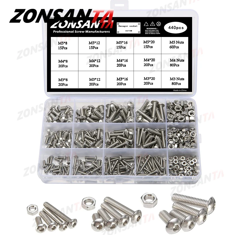 Набор болтов и гаек ZONSANTA M3 M4 M5 из нержавеющей стали, 440 шт.
