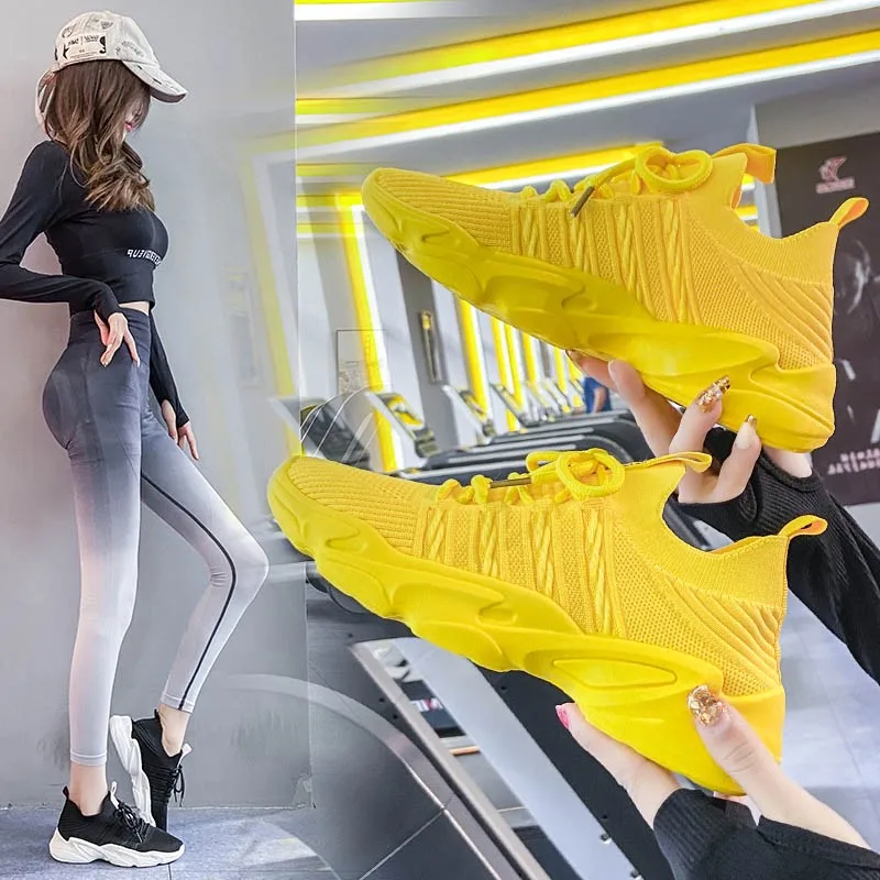 Женские летние дышащие желтые кроссовки