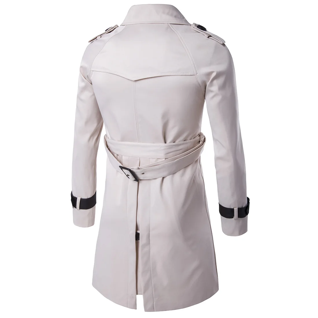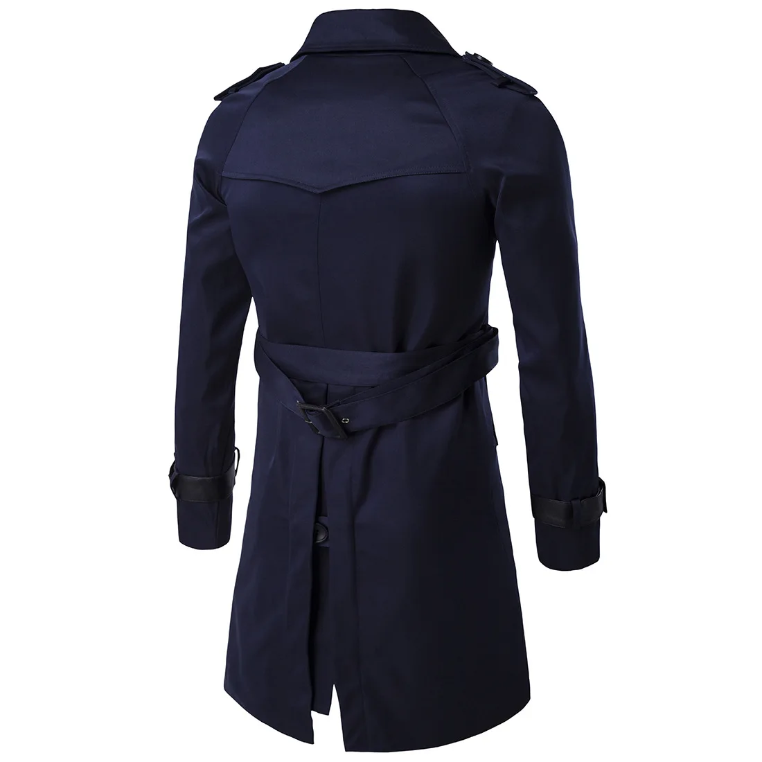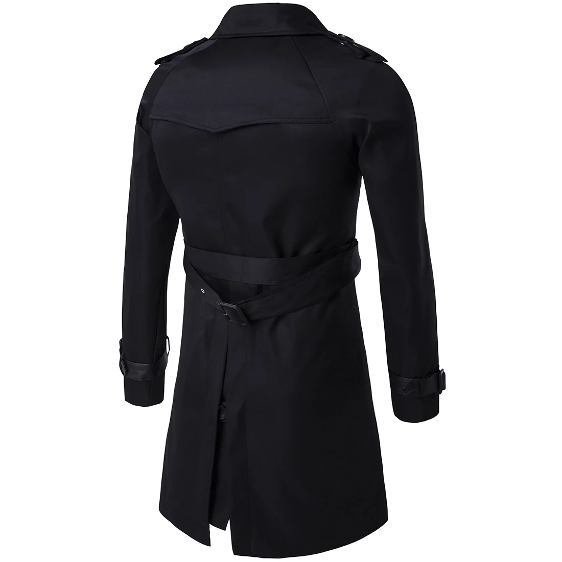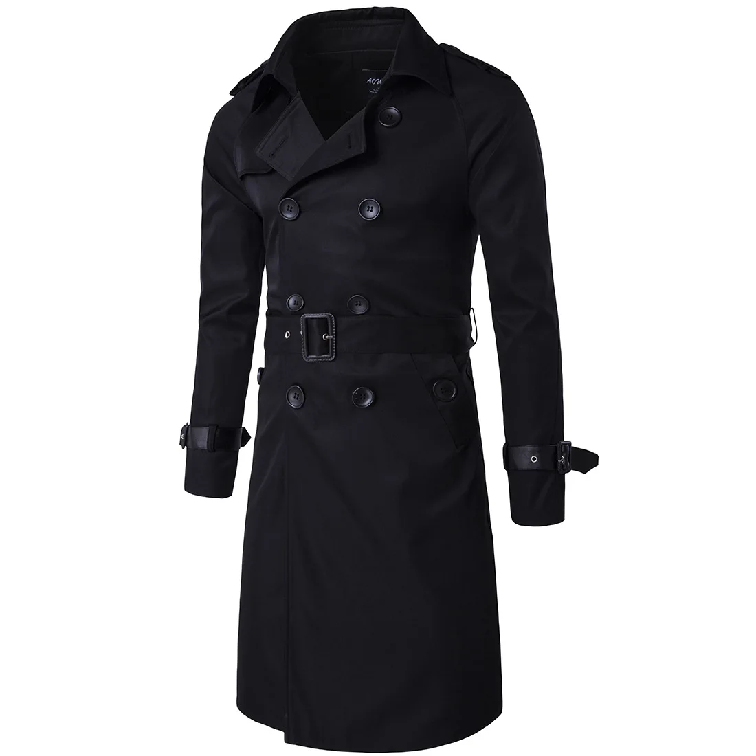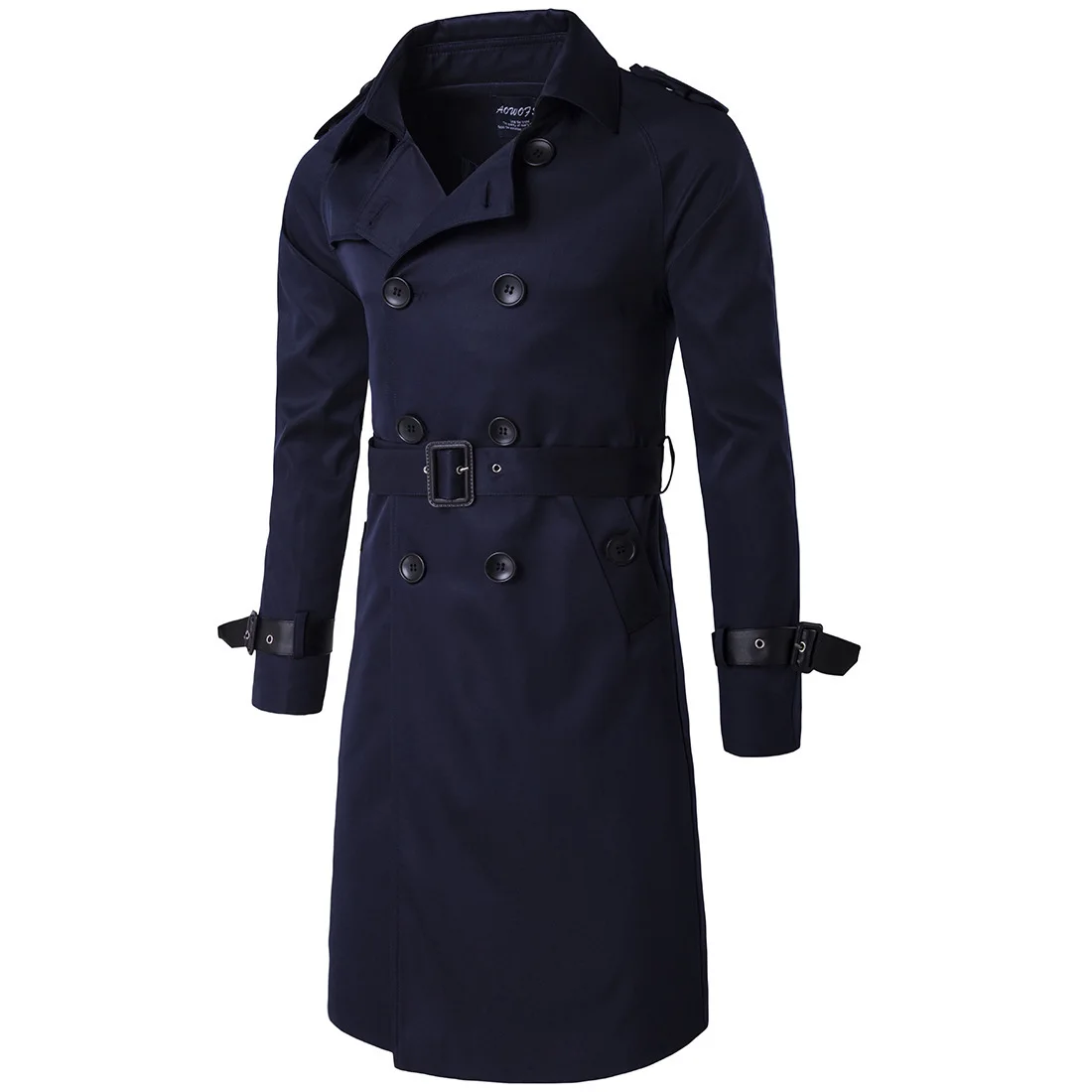 Осенняя повседневная мужская ветровка, Модное Длинное тонкое двубортное Мужское пальто, однотонный тренчкот, деловая куртка 5XL