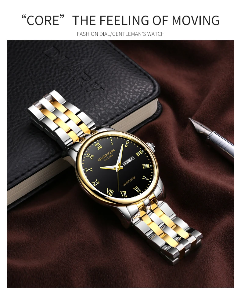Guanqin GS19131 кварцевые новые оригинальные водонепроницаемые Модные мужские часы с двойным календарем