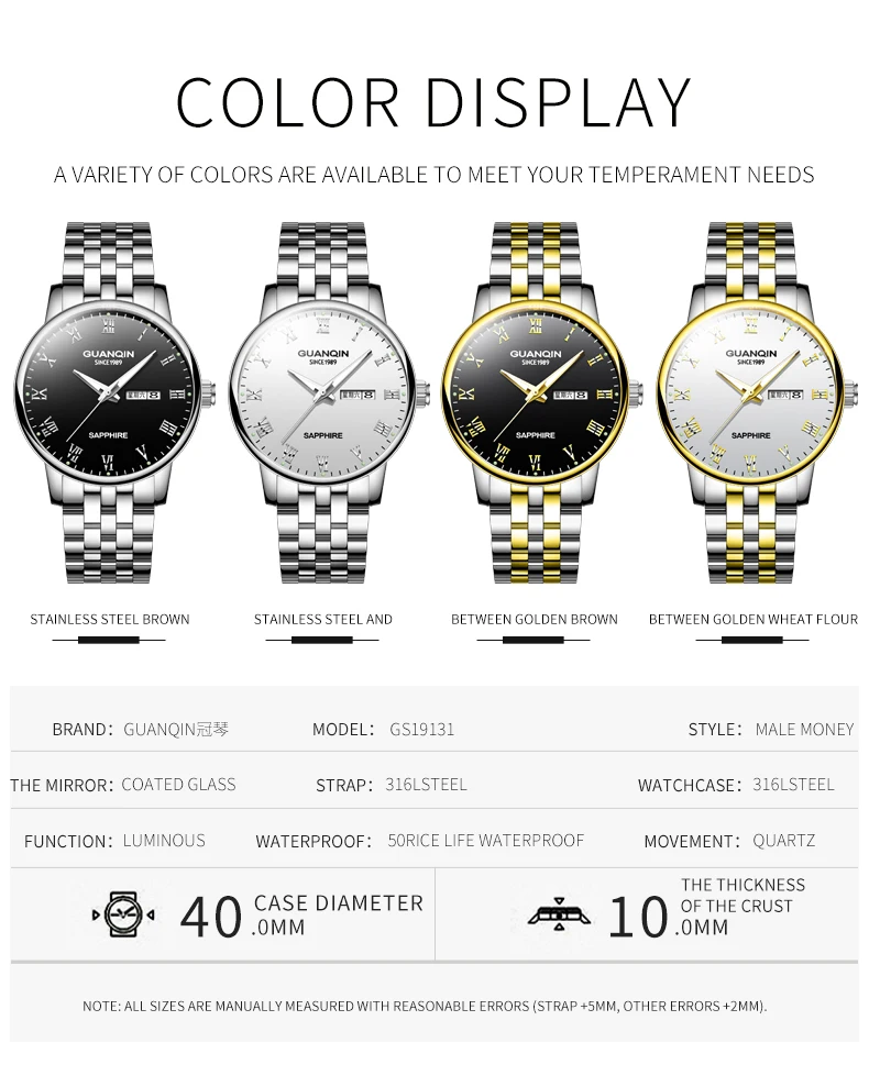 -Компания GUAN QIN использует высокотехнологичные технологии производства, улучшает качество продукции, снижает затраты на производство, предоставляет Доступные продукты для клиентов. Часы по цене, вы этого заслуживаете!