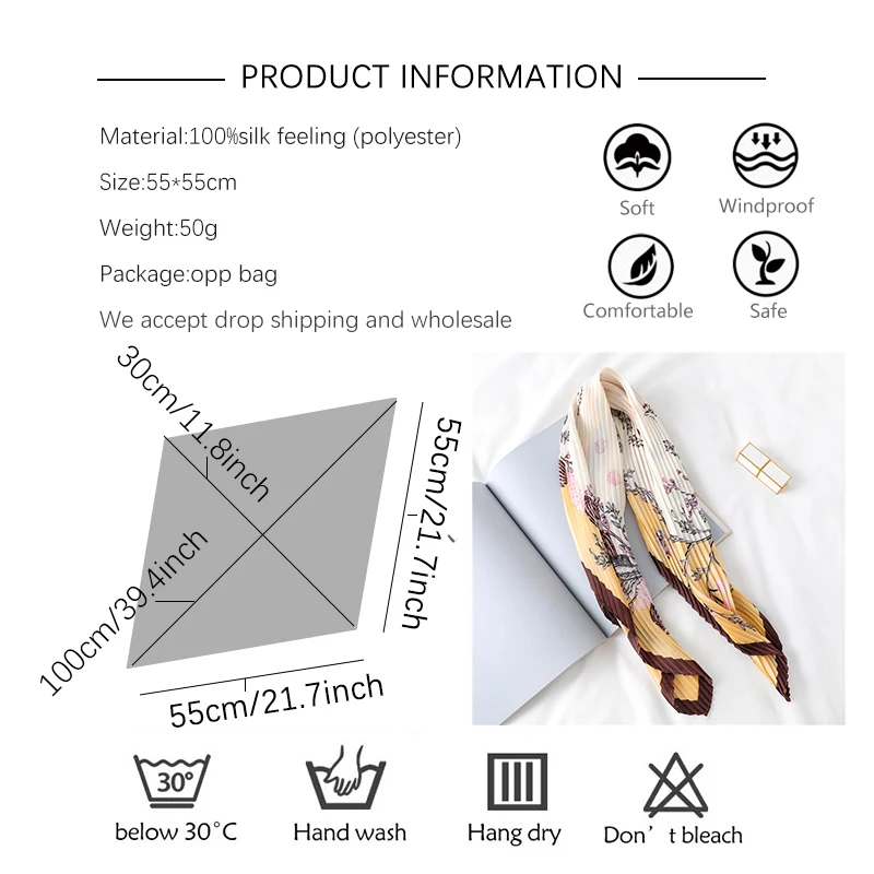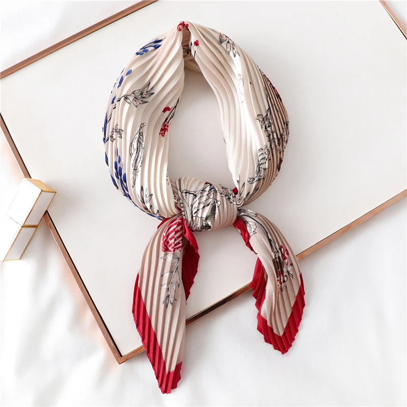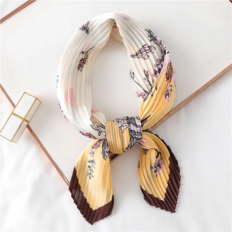 Шелковый шейный платок с морщинами для женщин, повязка для волос с цветочным принтом, шейный платок, женский платок, шали и повязки, бандана