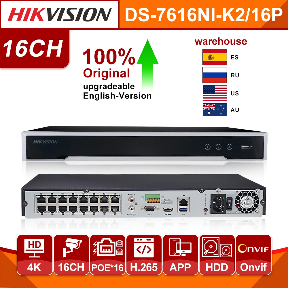 HIK POE NVR DS-7616NI-K216P 16CH H.265 12mp POE NVR для ip-камеры поддержка двухсторонней аудио HIK-CONNECT