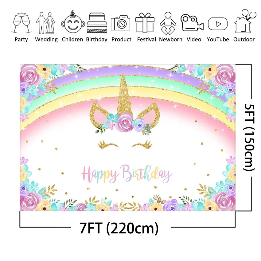 Mocsicka Радуга фон с единорогом для девочек Единорог Цветочные в б...