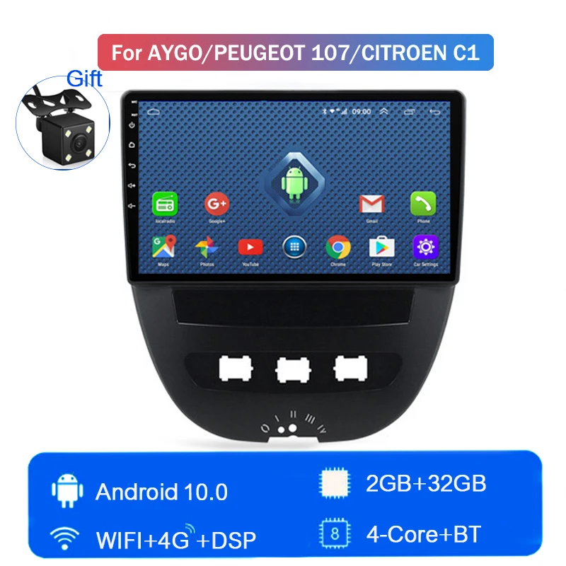 Мультимедийный видеоплеер на Android 10, центральный мультимедийный сенсорный экран BT Mirror Link 4G LTE для Toyota AYGO Peugeot 107 Citroen C1