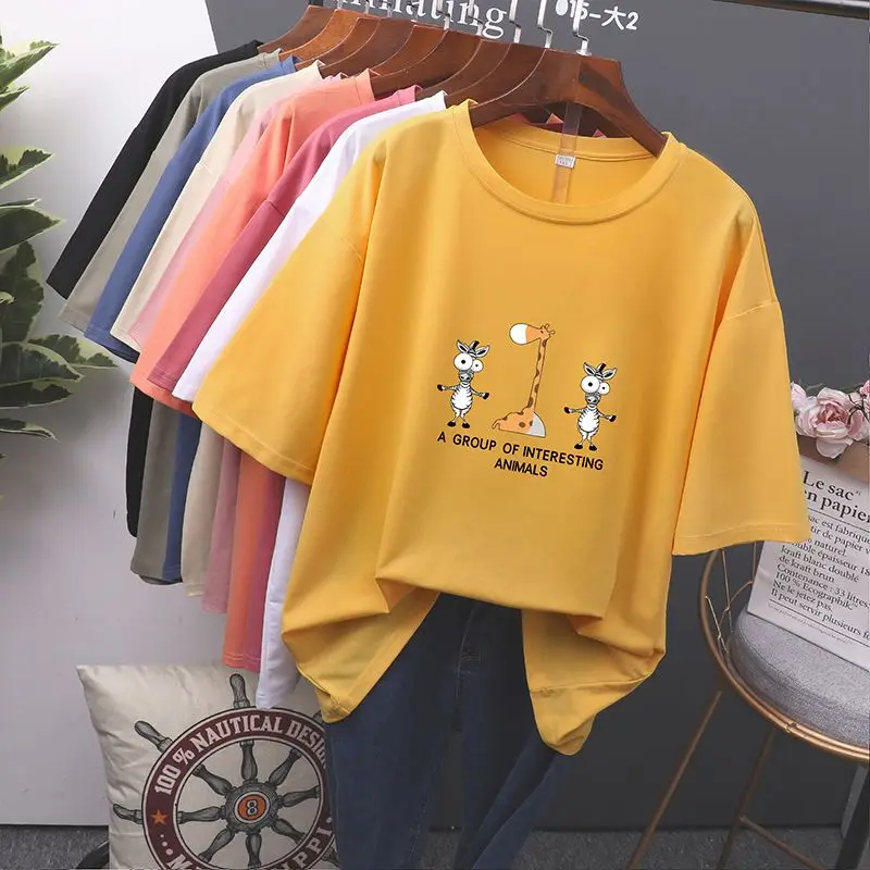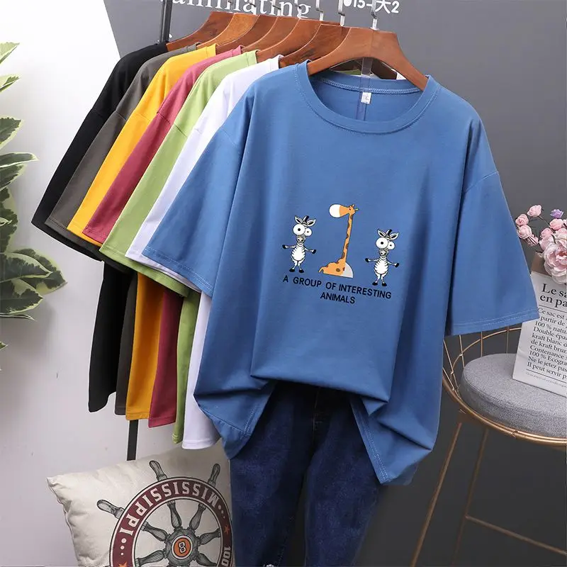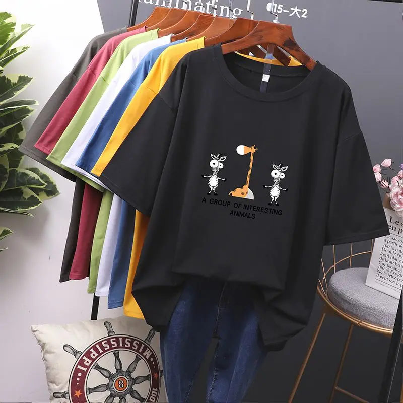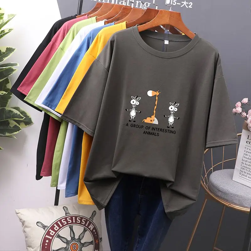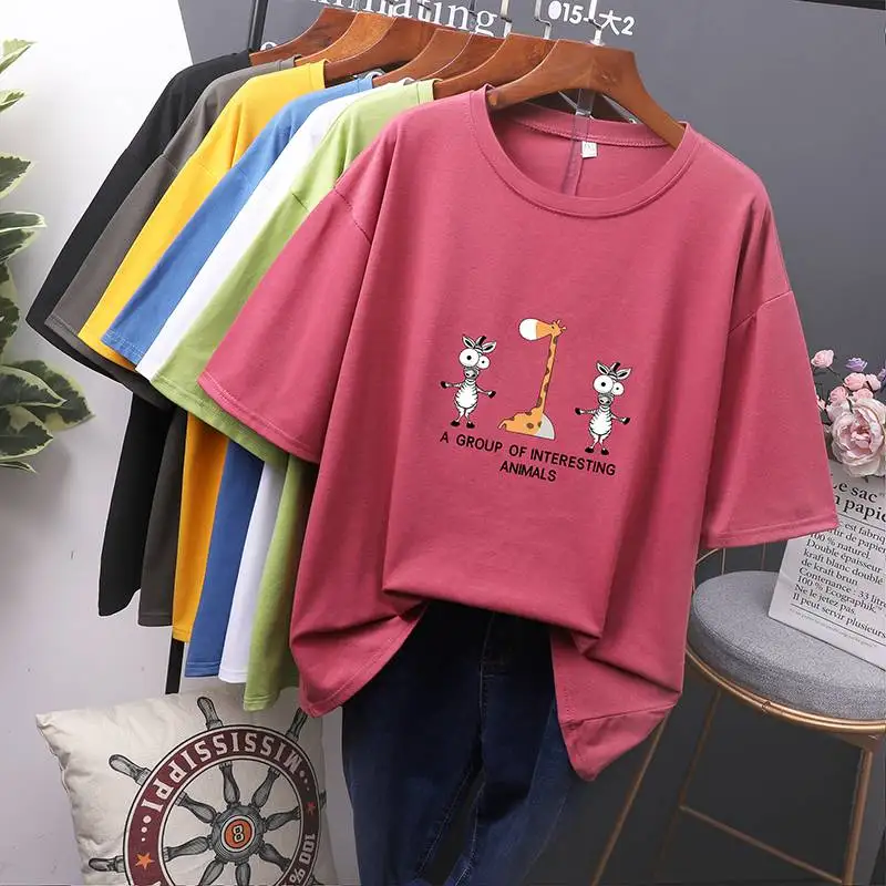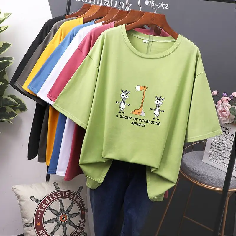 Футболка женская оверсайз с мультипликационным принтом, крутая Повседневная рубашка с круглым вырезом и коротким рукавом, размеры 5XL 6XL 7XL 8XL 40-150 кг, в стиле Харадзюку
