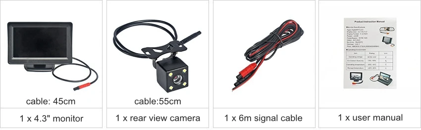 1. 4,3 "светодиодный цветной TFT ЖК-монитор с камерой заднего вида. Полноцветный светодиодный дисплей с подсветкой.