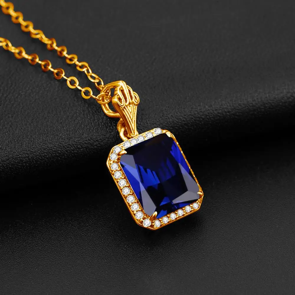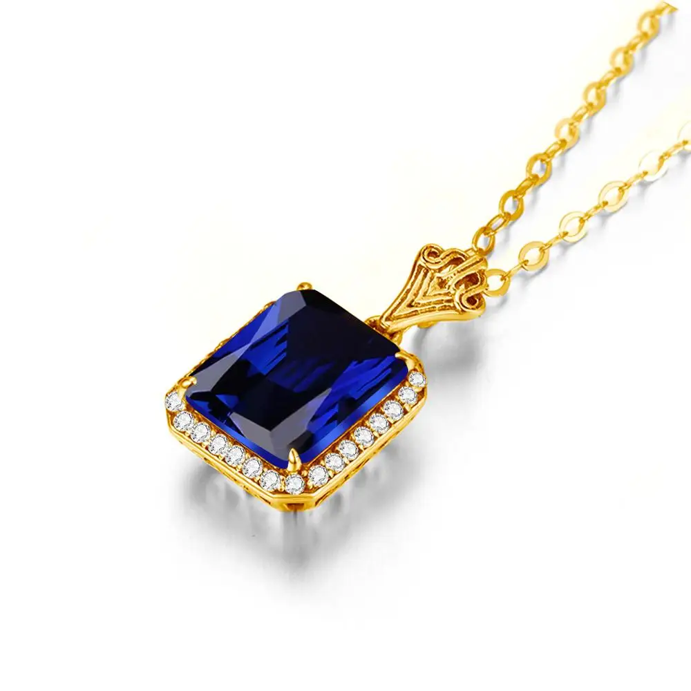18K золотые ювелирные изделия 100% 925 Стерлинговое Серебро, сапфир Подвески Роскошные женское ожерелье с подвеской, хорошее ювелирное изделие, квадратный Форма драгоценный камень
