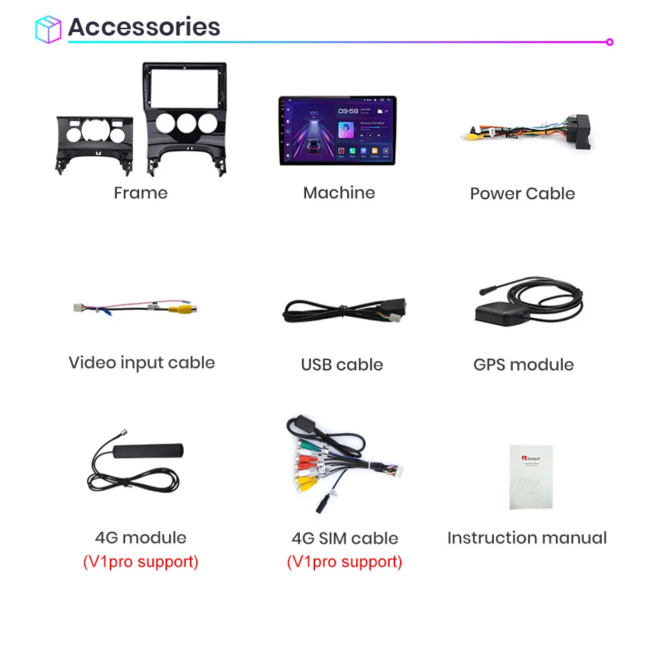 1. Штифт-штифт: Кабель питания Junsun radio' является штифтом для штифта, прост в установке;2. Встроенный Carplay/ Android Auto: Поддержка версии V1Pro, просто используйте кабель телефона, подключите его, стабильный и простой в использовании; (V1 поддерживает только Android Auto, но нужно покупать; V1C не поддерживает)3. Поддержка подголовника: только поддержка версии Junsun V1;
