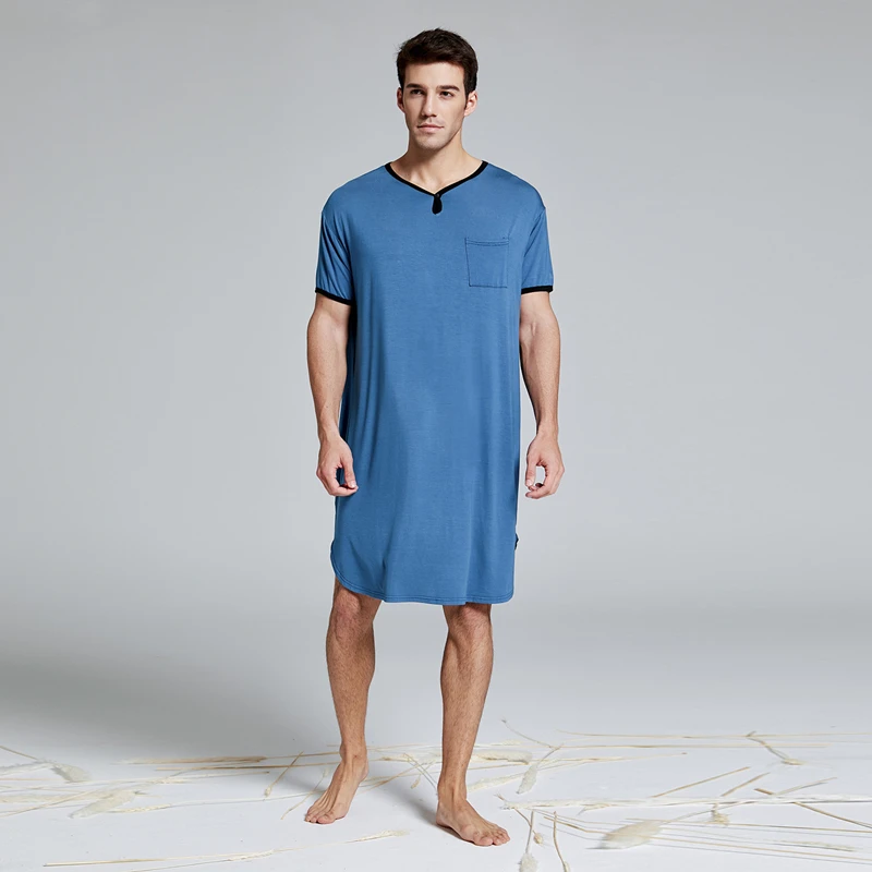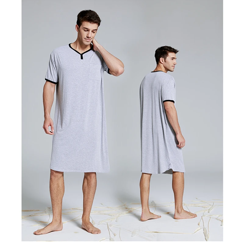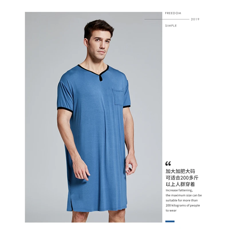 2020 Мужская одежда для сна длинная ночная рубашка с коротким рукав...