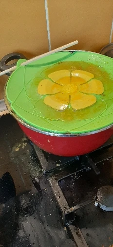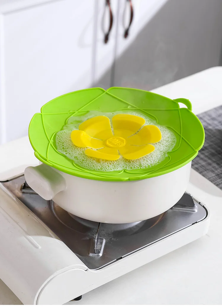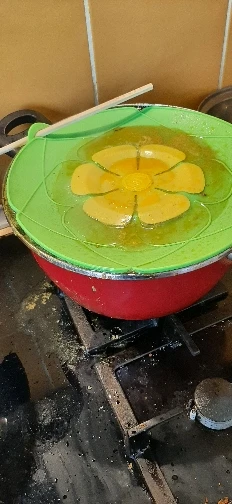 Это самое странное, что я купила в Али . Как ни странно, но спасает при варке картошки и супа, ломая закон Мёрфи. Цветок съёмный, силикон хорошо отмывается, при вскрытии был характерный запах свежего пищевого силикона (после первого мытья исчез). Так что глаз дёргается теперь реже