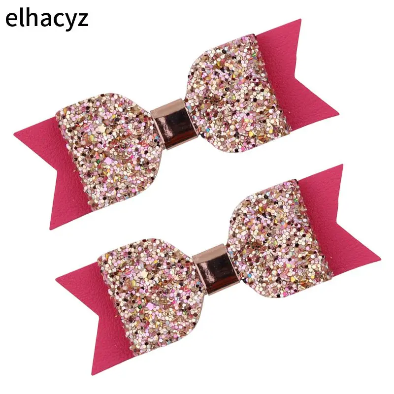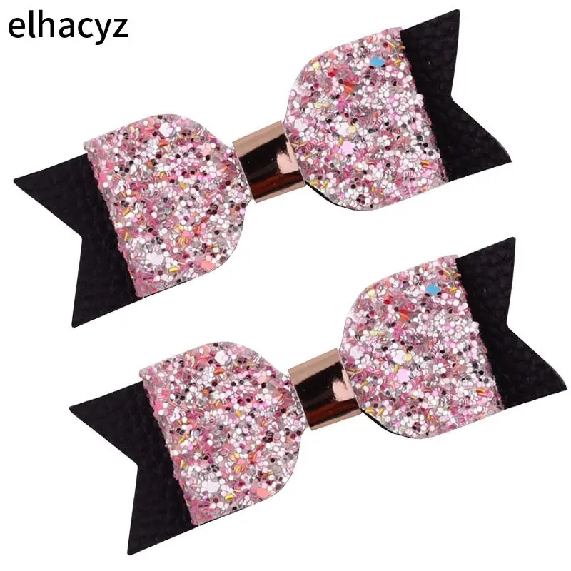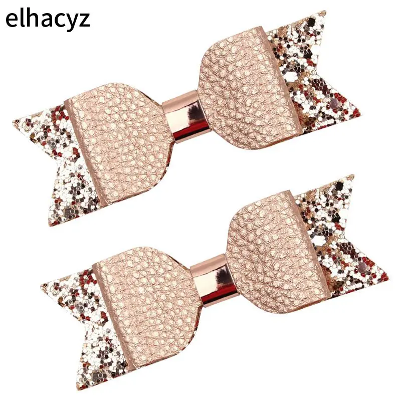 2 шт.лот, новые милые заколки для волос с блестящим бантом, кожаные заколки для волос с бантом, женские заколки, блестящие изысканные аксессуары для волос для девочек