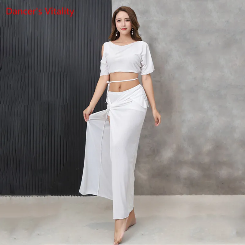 Женский костюм для танца живота, топ с коротким рукавом, тренировочный костюм, Новая женская сексуальная Длинная юбка, одежда для сцены
