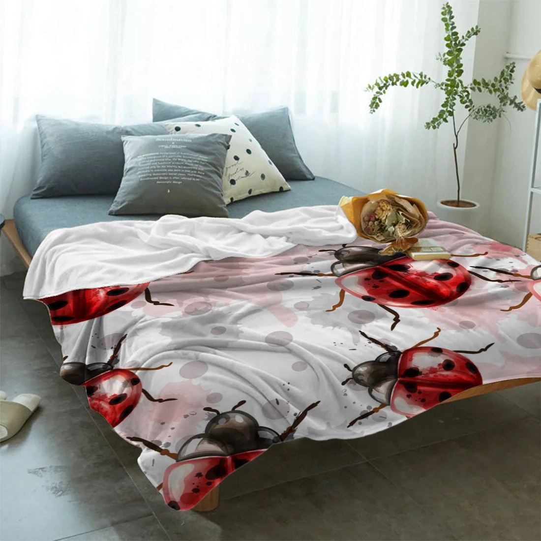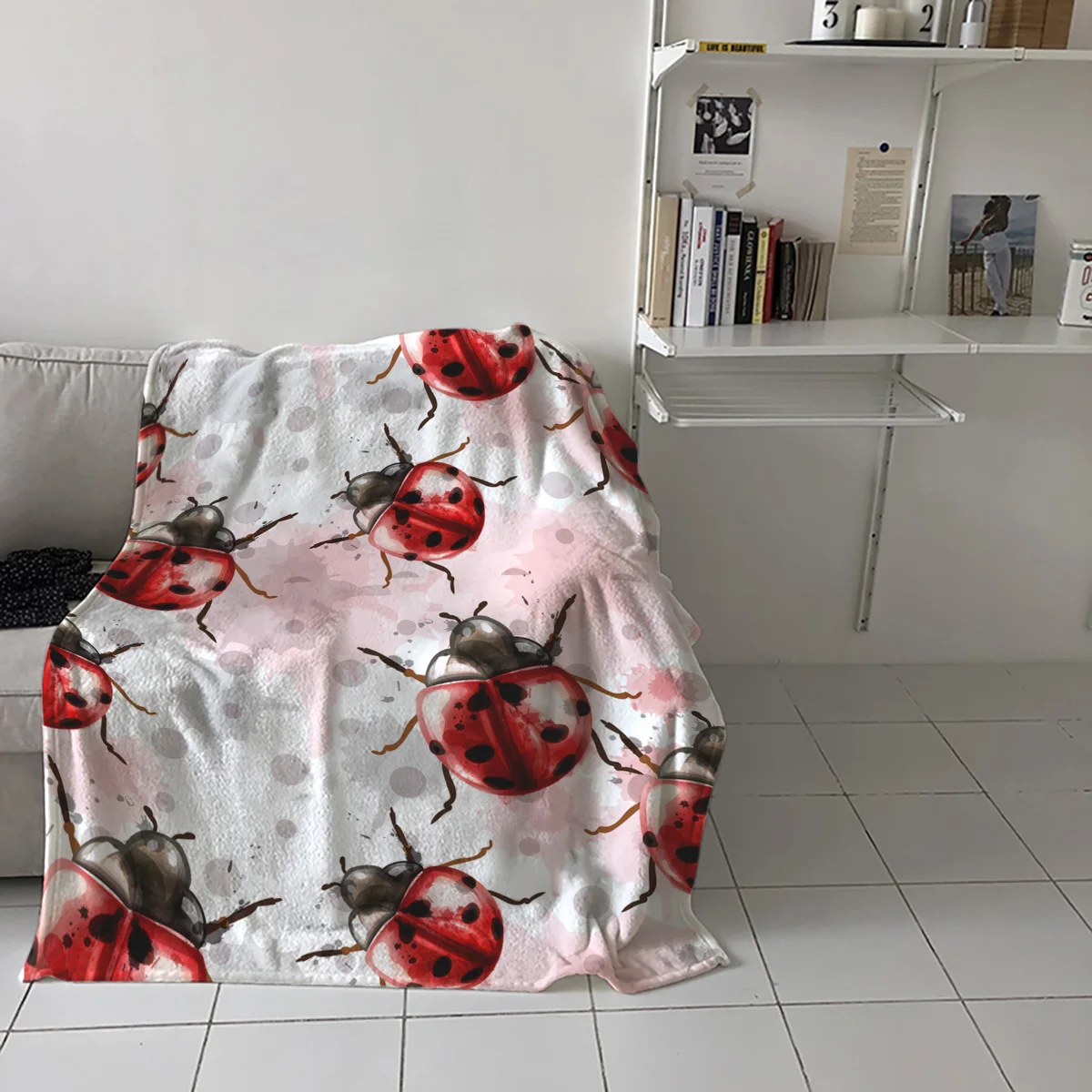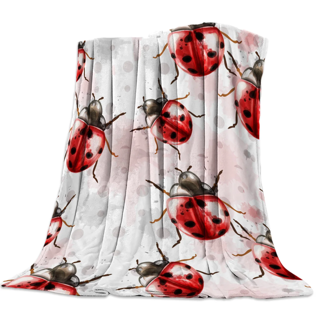 Акварельное фланелевое одеяло с принтом божьей коровки, мягкие одеяла, машинные стирающиеся одеяла, одеяло для кровати
