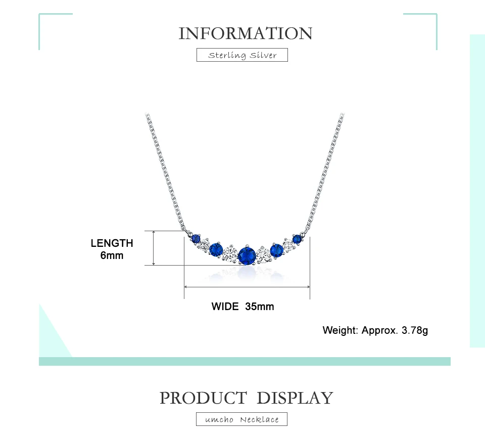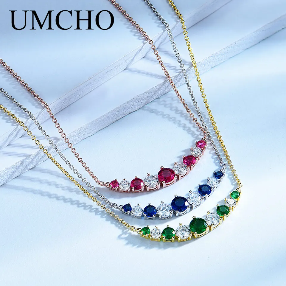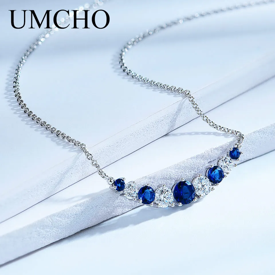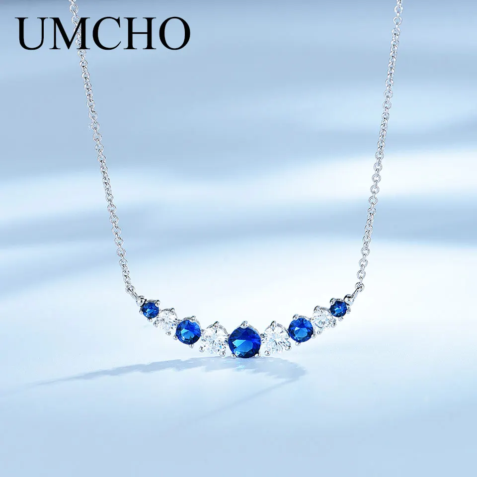 UMCHO Трендовое синее нано-сапфир ожерелье из стерлингового серебра 925 пробы цепочка для женщин Подарок на годовщину хорошее ювелирное изделие