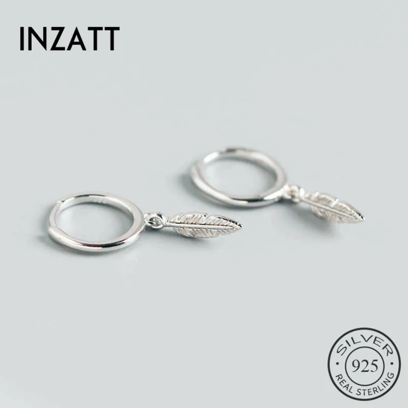Женские серьги-кольца INZATT, минималистичные вечерние серьги из стерлингового серебра 925 пробы с листьями, изящные украшения для растений