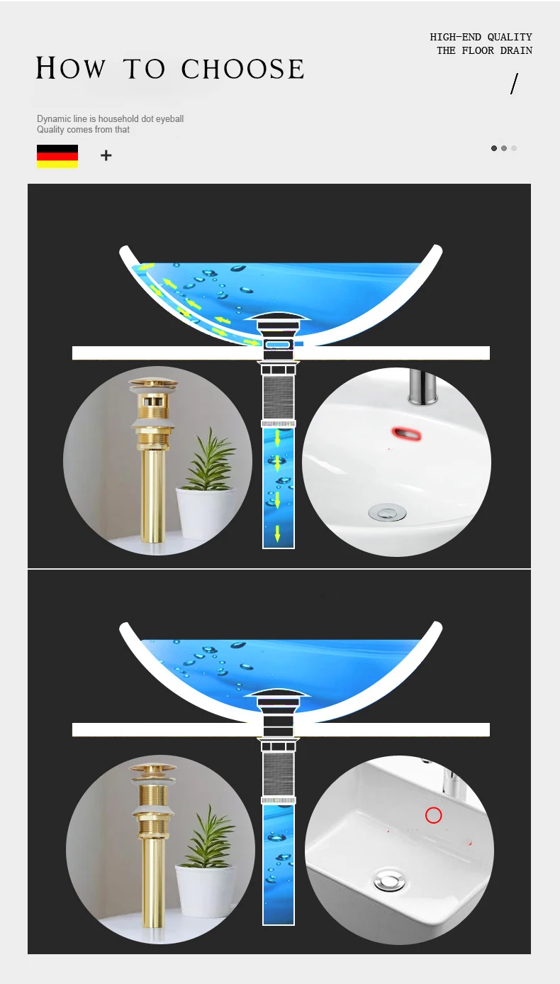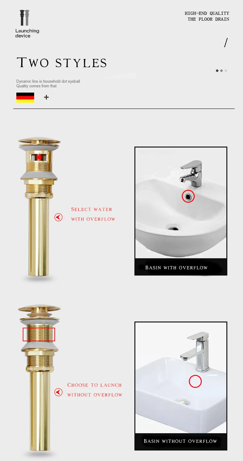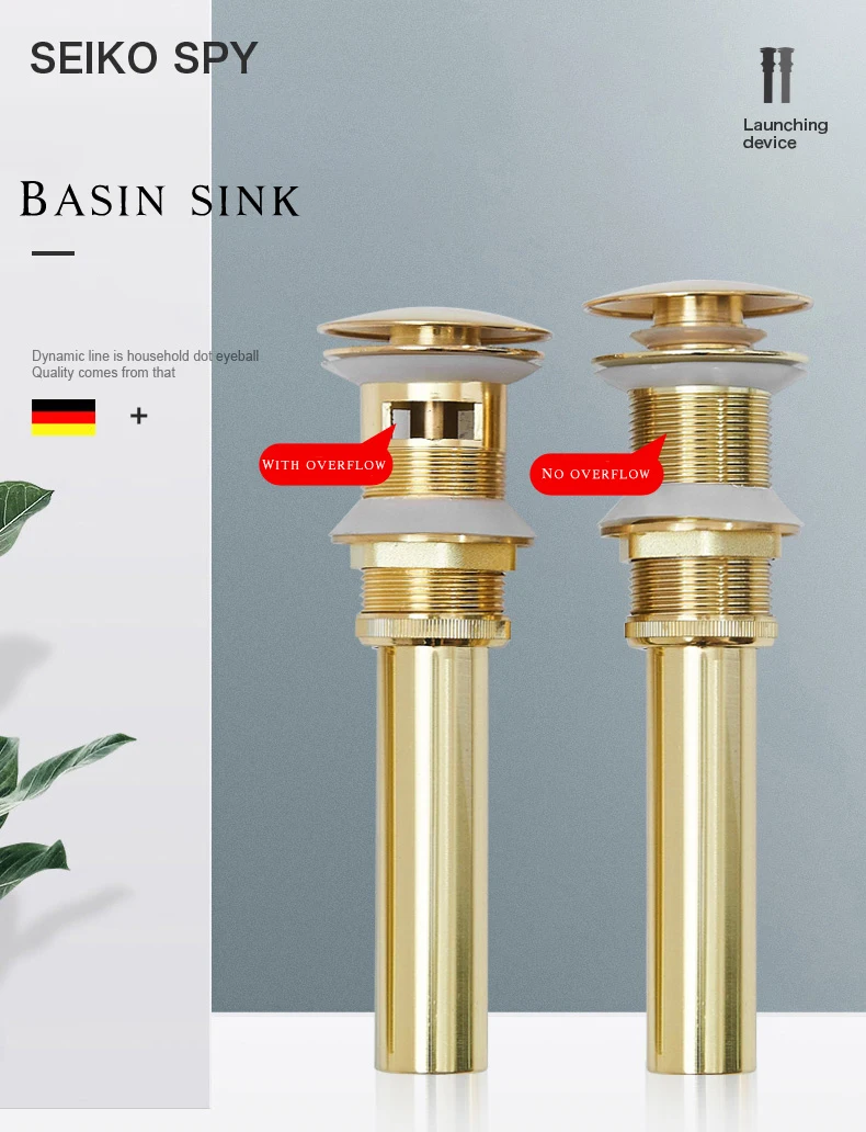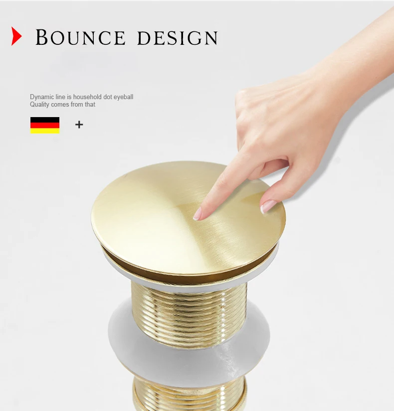 Золотая щетка для раковины ванной комнаты, Слив отходов, выскакивание отходов, тщеславие, слив раковины без и с переливом, античный кран, слив