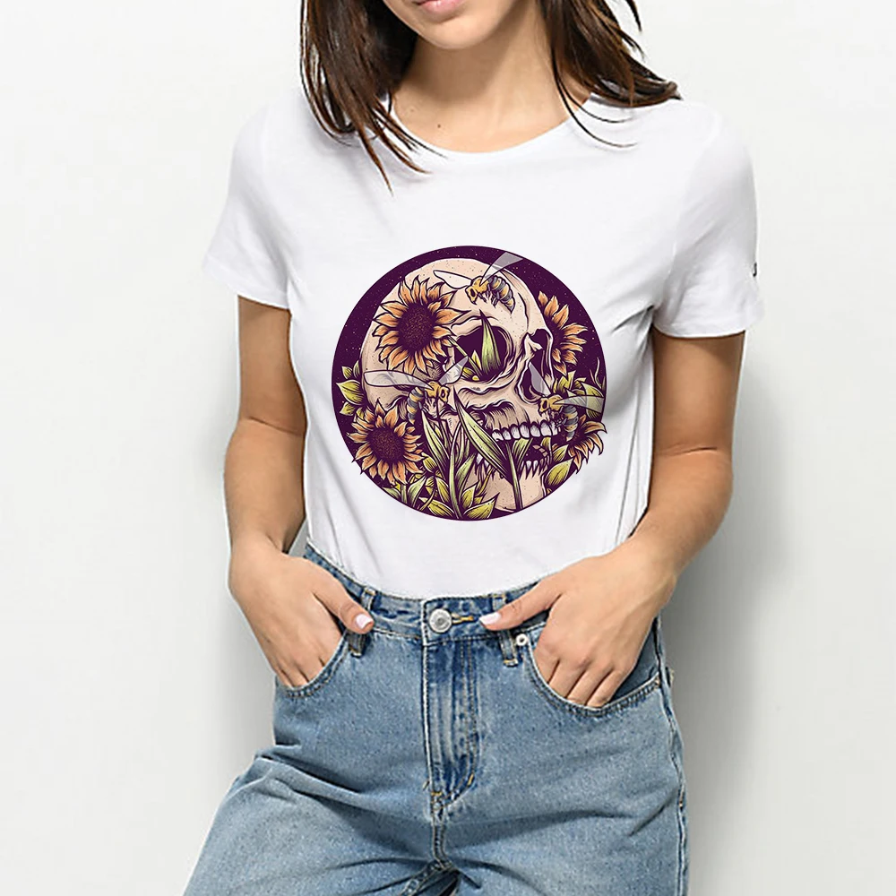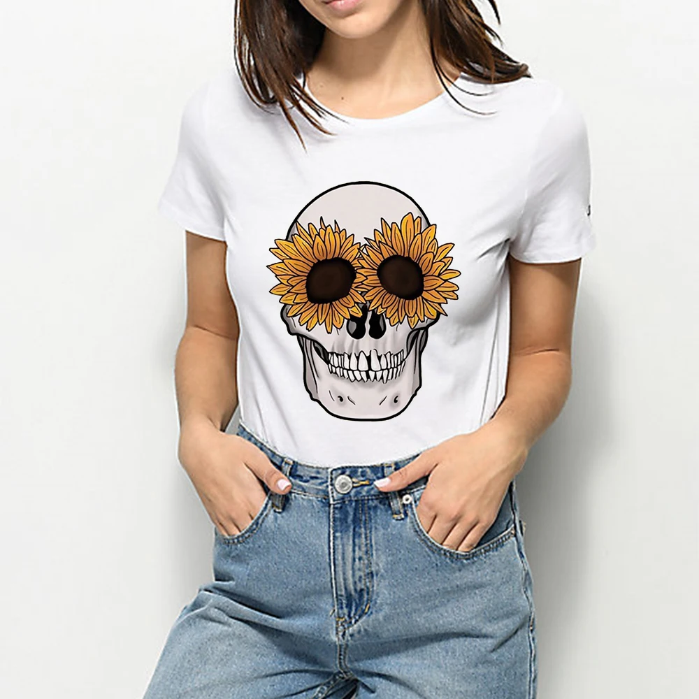 Модные женские футболки с изображением Дня мертвых черепов из сериа...