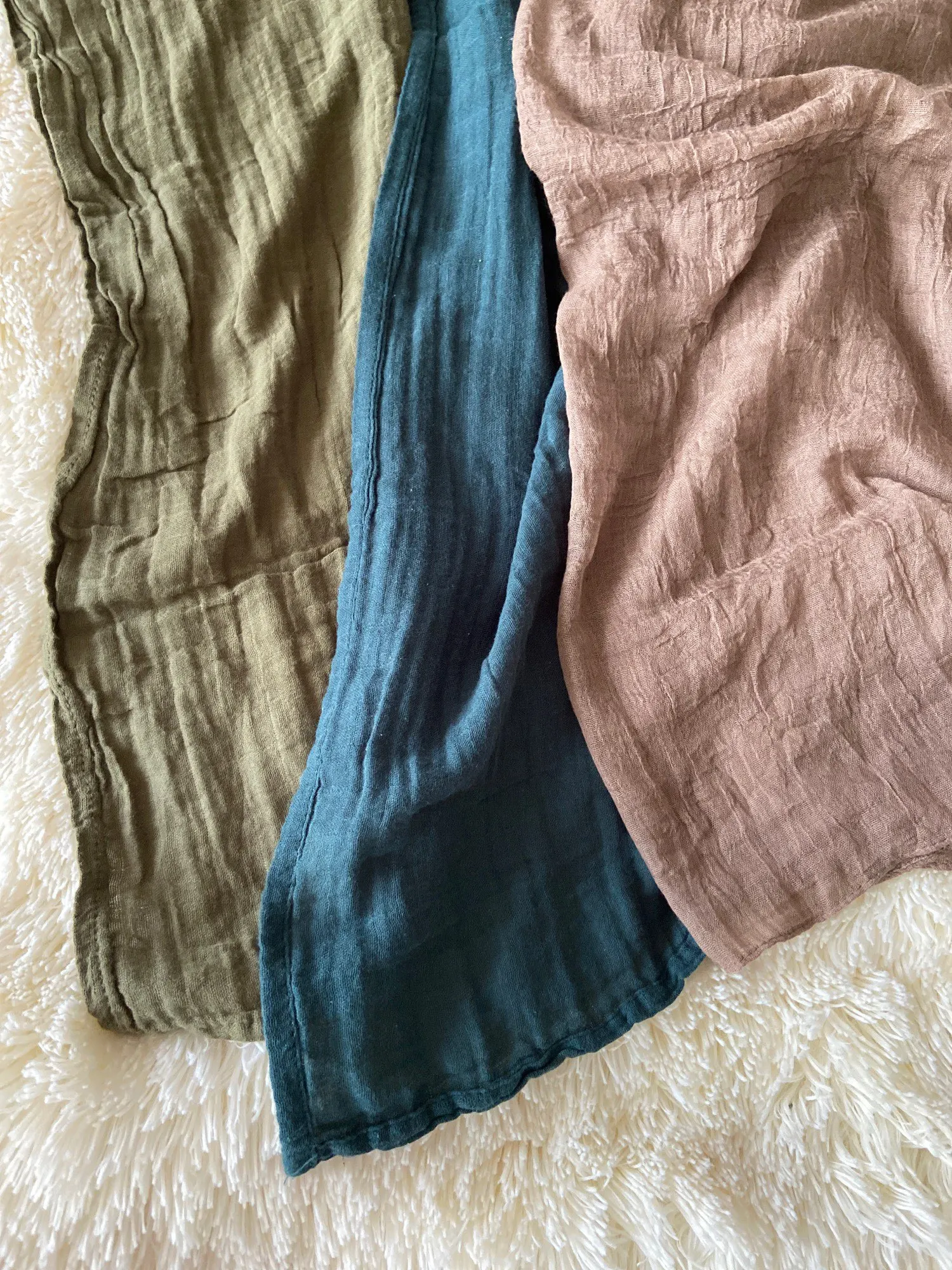 Приятные лёгкие пелёнки, состав 100% хлопок. Светло-желтая пелёнка чуть светлее, чем на фото, плюс странно, что подшита она белыми нитками, но в целом впечатление хорошее. Горчичная понравилась больше по цвету, обработаны края аккуратнее и нитками в цвет. Посылка пришла в целостности и довольно быстро.