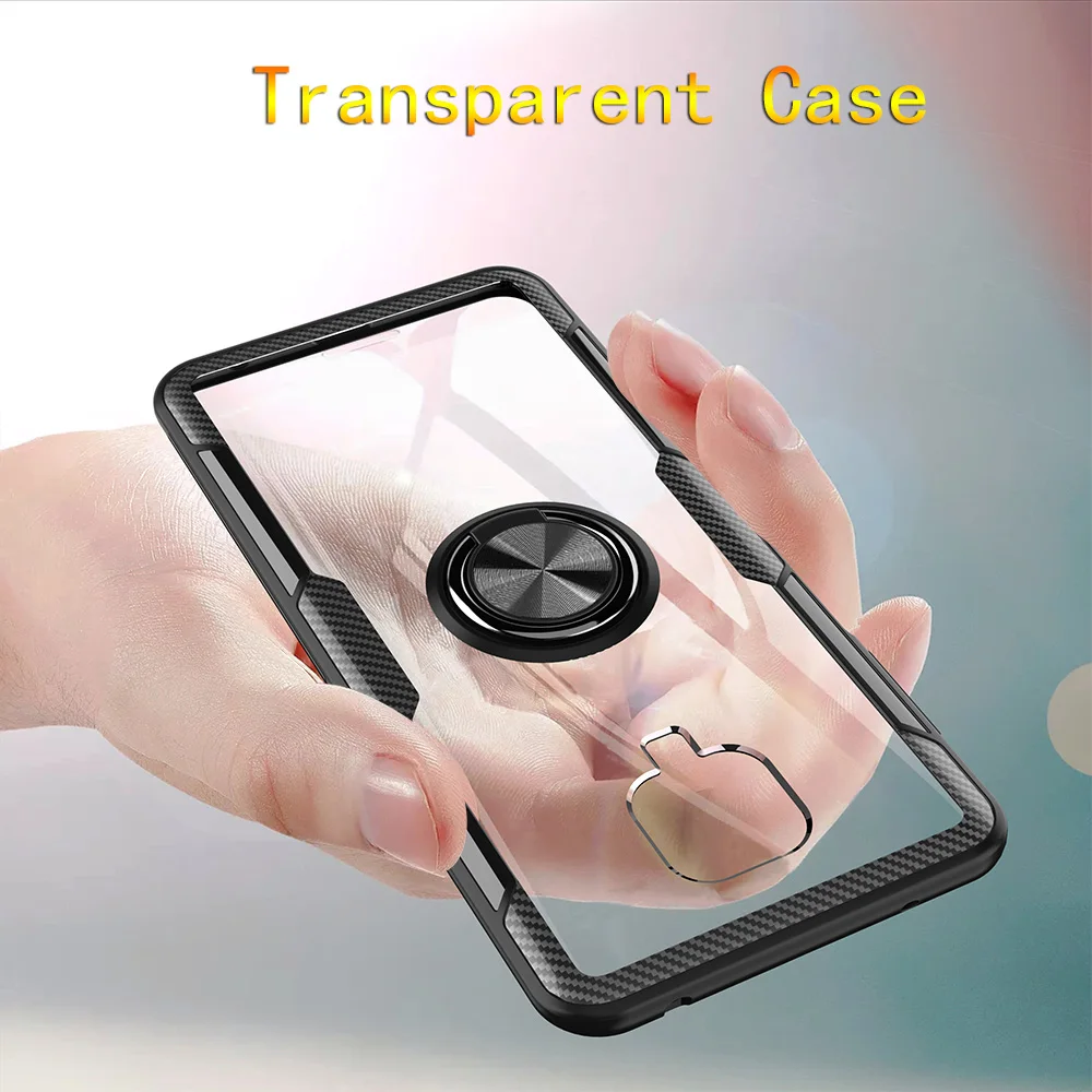 Модный мягкий силиконовый чехол из ТПУ + прозрачный жесткий чехол-накладка из поликарбоната с магнитным кольцом для автомобильного держателя, функция подставки