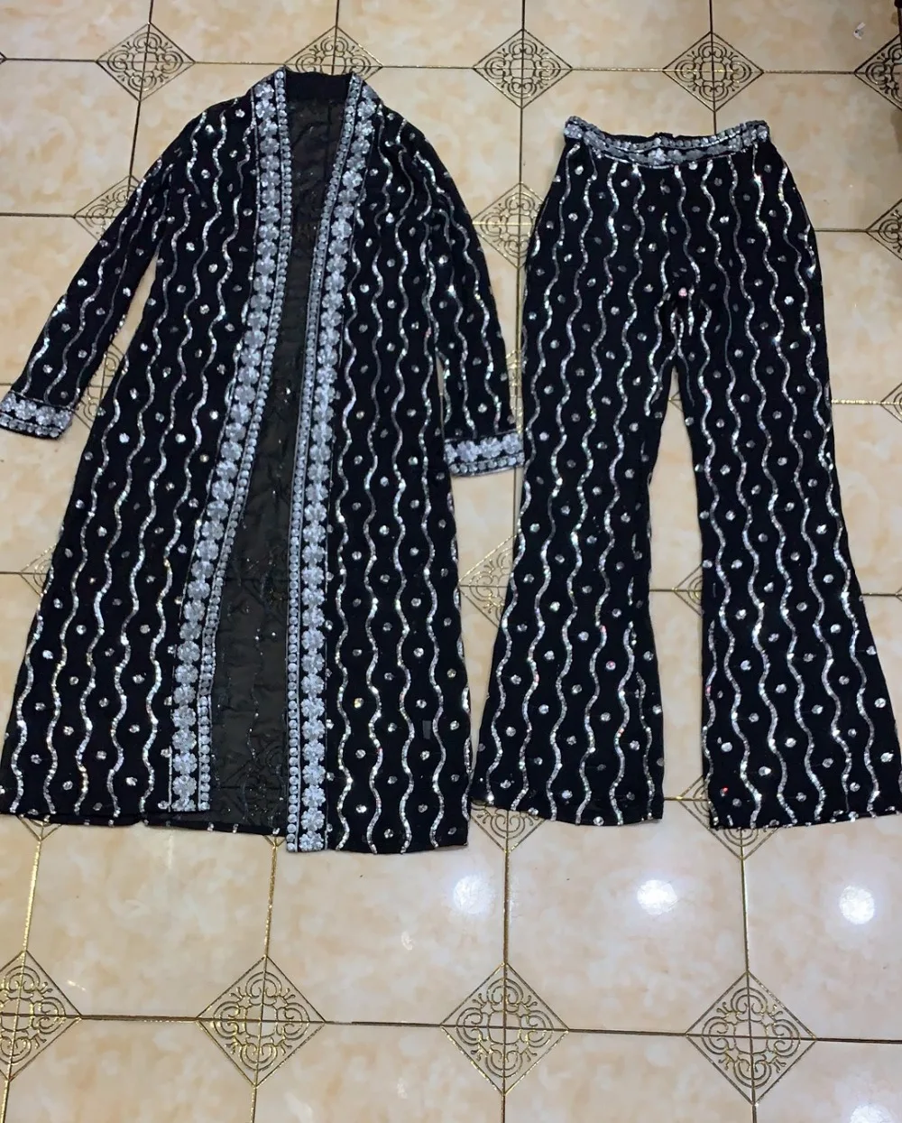 Женский винтажный комплект из двух предметов, пальто и брюки с блестками и бисером, модель 2021 года