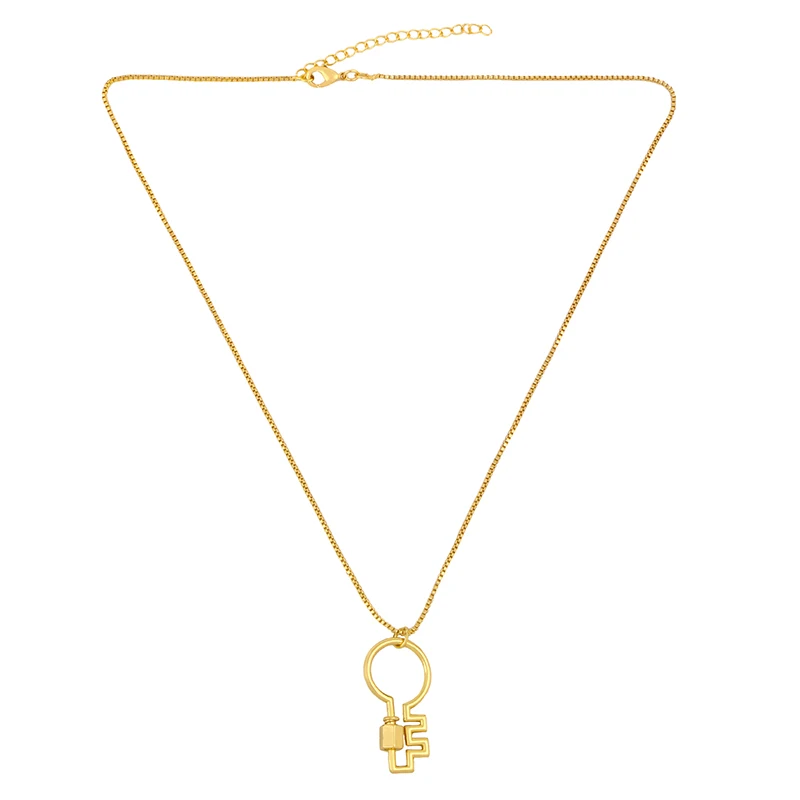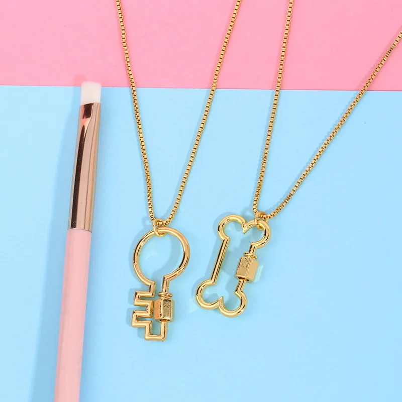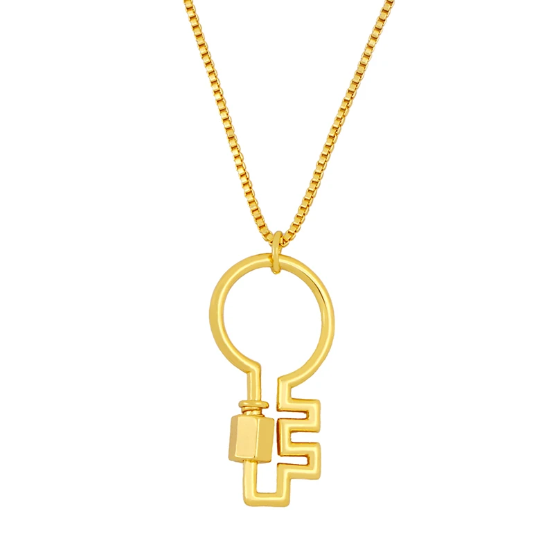 Ожерелье FLOLA nkeq98 с подвеской в виде золотого висячего замка и ключом, женское ожерелье с карабином и застежкой-винтом, ювелирные изделия из меди и циркония