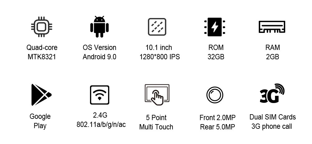 Планшет 10,1 дюймов Новый Android 9,0 планшетный ПК с сенсорным экраном с двумя сим-картами 4 ядра 2 Гб Оперативная память 32GB хранения телефонных звонков Tab Планшеты 10 штекером