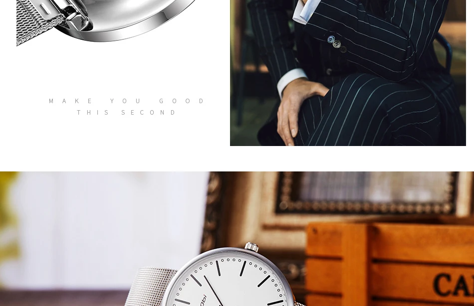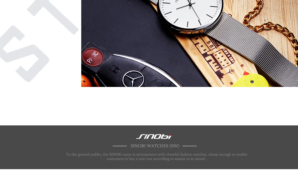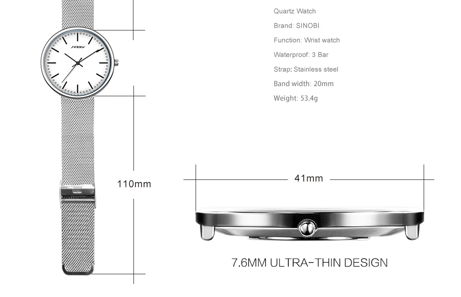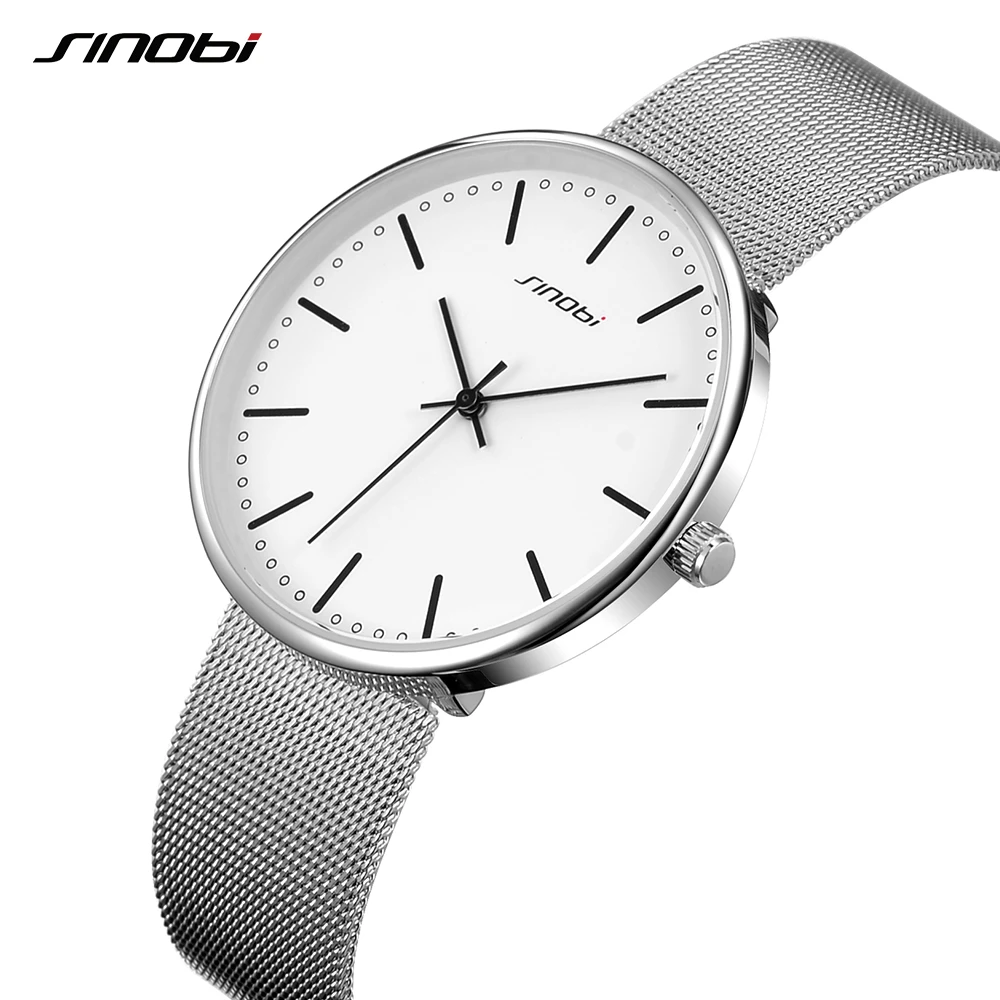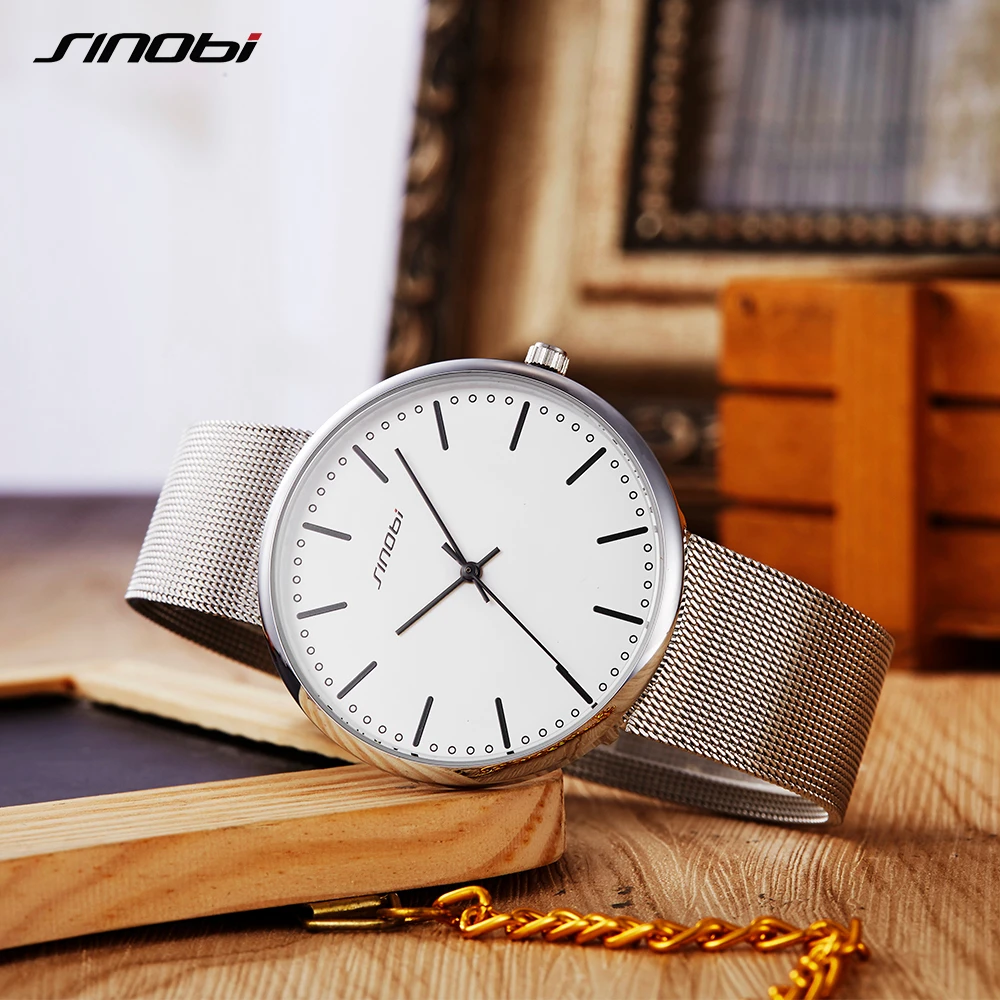 Часы Sinobi Мужские Аналоговые ультратонкие, минималистичные Брендовые повседневные аналоговые, с сетчатым браслетом из нержавеющей стали, в стиле Миланского браслета