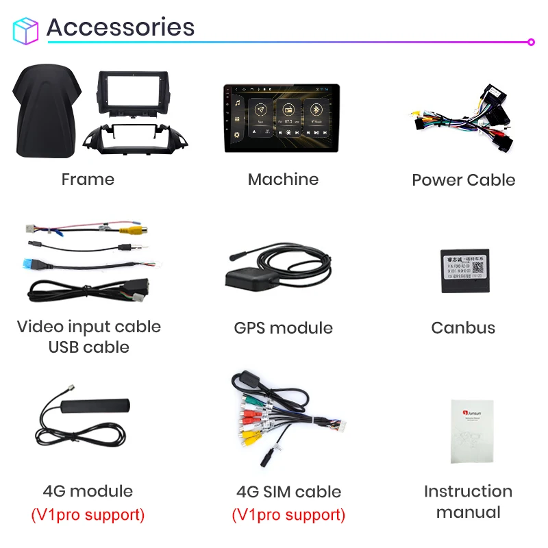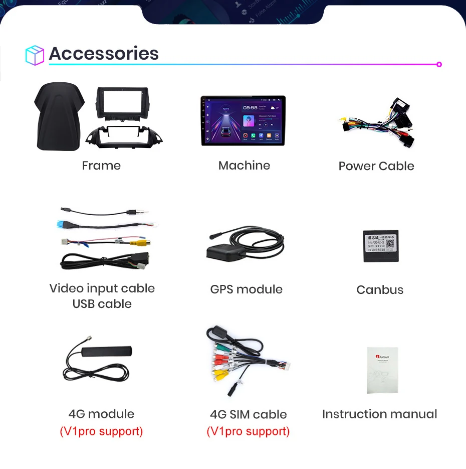 1. Штифт-штифт: Кабель питания Junsun radio' является штифтом для штифта, прост в установке;2. Встроенный Carplay/ Android Auto: Поддержка версии V1Pro, просто используйте кабель телефона, подключите его, стабильный и простой в использовании; (V1 поддерживает только Android Auto, но нужно покупать; V1C не поддерживает)3. Поддержка подголовника: только поддержка версии Junsun V1;