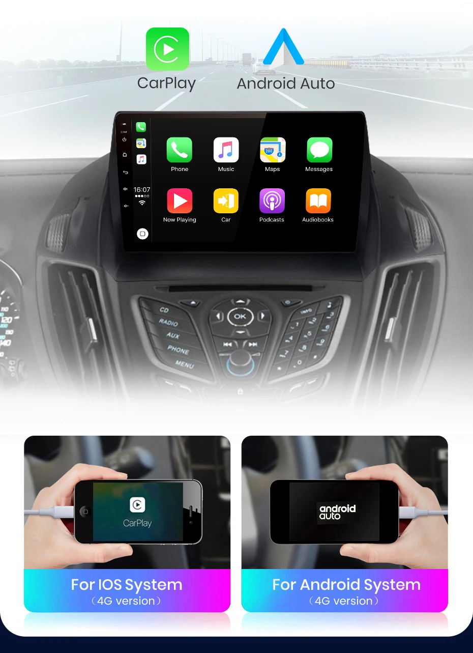 Bulit in CarPlay4G+64G supports, easy to handle iPhone while driving