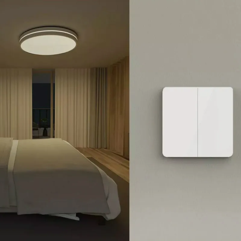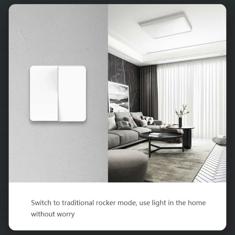 Особенности:3 типа переключатель опциональноНастенный выключатель Xiaomi Mijia имеет одно открытое двойное управление, двойное открытое двойное управление, три открытых двойного управления, пользователи могут выбрать в соответствии с реальной ситуацией дома.Совместим с интеллектуальным светильникНастенный выключатель Xiaomi Mijia, Встроенная ручка переключения режимов, переключение на «Режим самоотскока», может управлять умными лампами дома, чтобы убедиться, что умные лампы после выключения света все еще в сети, можно управлять приложением Xiaomi AI и мобильный телефон.Совместимость с неинтеллектуальными лампамиКогда переключатель переключается на «традиционный режим рокера», он может управлять любыми неумными лампами дома, которые можно включить и выключить, нажав мягко.Переключатель двойного управления обеспечивает многопозиционное управлениеНастенный выключатель Xiaomi Mijia-это двойной переключатель управления. Можно использовать одиночное управление или двойное управление электрической цепи домашней проводки. Двойной переключатель управления может удовлетворить многопозиционное Управление лампой пользователя. Вы можете использовать различные переключатели для управления одной и той же лампой.Xiaomi Mijia настенный выключатель внешняя кнопка включения/выключения питанияКогда переключатель находится в режиме самоотскока, нажмите и удерживайте верхнюю часть панели и в то же время перемещайте ручку включения/выключения питания, переключатель будет оставаться в состоянии нормального включения или выключения питания; Простая работа, И больше не беспокойтесь о безопасности и энергопотреблении при выходе.Настенный выключатель Xiaomi Mijia поддерживает список продуктов:Потолочный светильник MijiaСветодиодный потолочный светильник Yeelight zirconСветодиодный потолочный светильник Yeelight zircon ProСветодиодный потолочный светильник Yeelight zirconСветодиодный светильник с цирконием YeelightYeelight стилизованная потолочная лампа ProYeelight стилизованная потолочная лампа миниYeelight стилизованная потолочная лампаСветодиодная смарт-панель YeelightВ дополнение к списку продуктов выше, лампа имеет логотип SLISAON также может быть поддерживается.Посылка включает в себя:1x настенный выключатель Xiaomi Mijia(По вашему выбору)1 руководство по введению2xУстановкаВинты