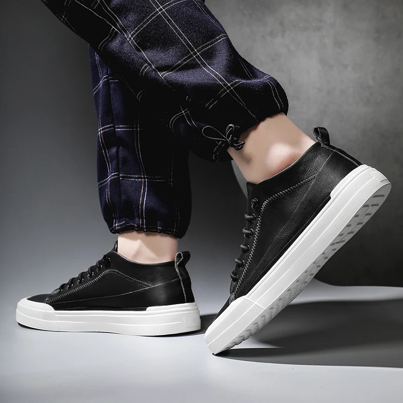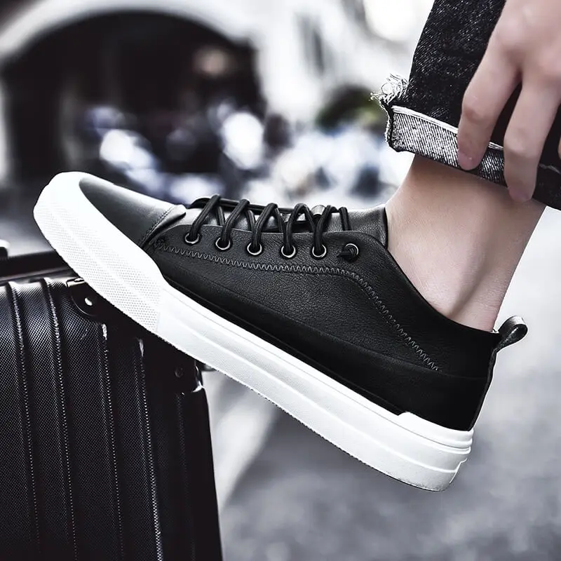 Мужская кожаная обувь; Повседневные кроссовки на плоской подошве; Мужская весенняя обувь; Черная модная мужская повседневная обувь; Новинка 2020 года; Мужская обувь