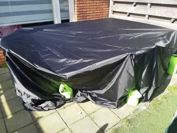 Прибыл вовремя! Не раньше я закрывал гостиную и стол, когда у нас было 80 мм дождя. Я с радостью сообщу, что гостиная остается полностью сухой под крышкой. Очень доволен товаром, и он также идеально подходит. Спасибо вам