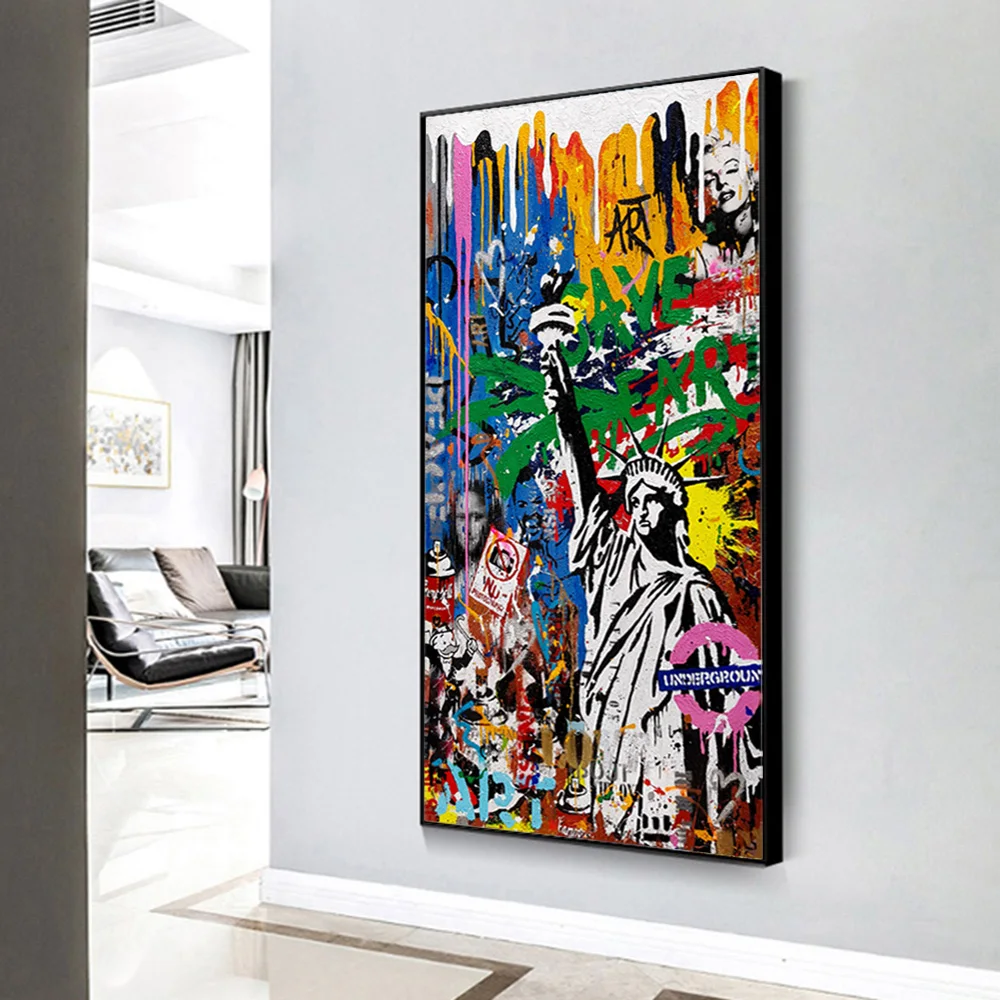 Абстрактная Статуя Свободы, граффити, холст, настенная живопись на стену, Декор, плакат и принты, картина, уличное искусство для гостиной