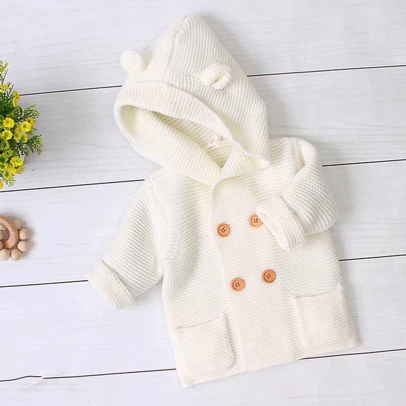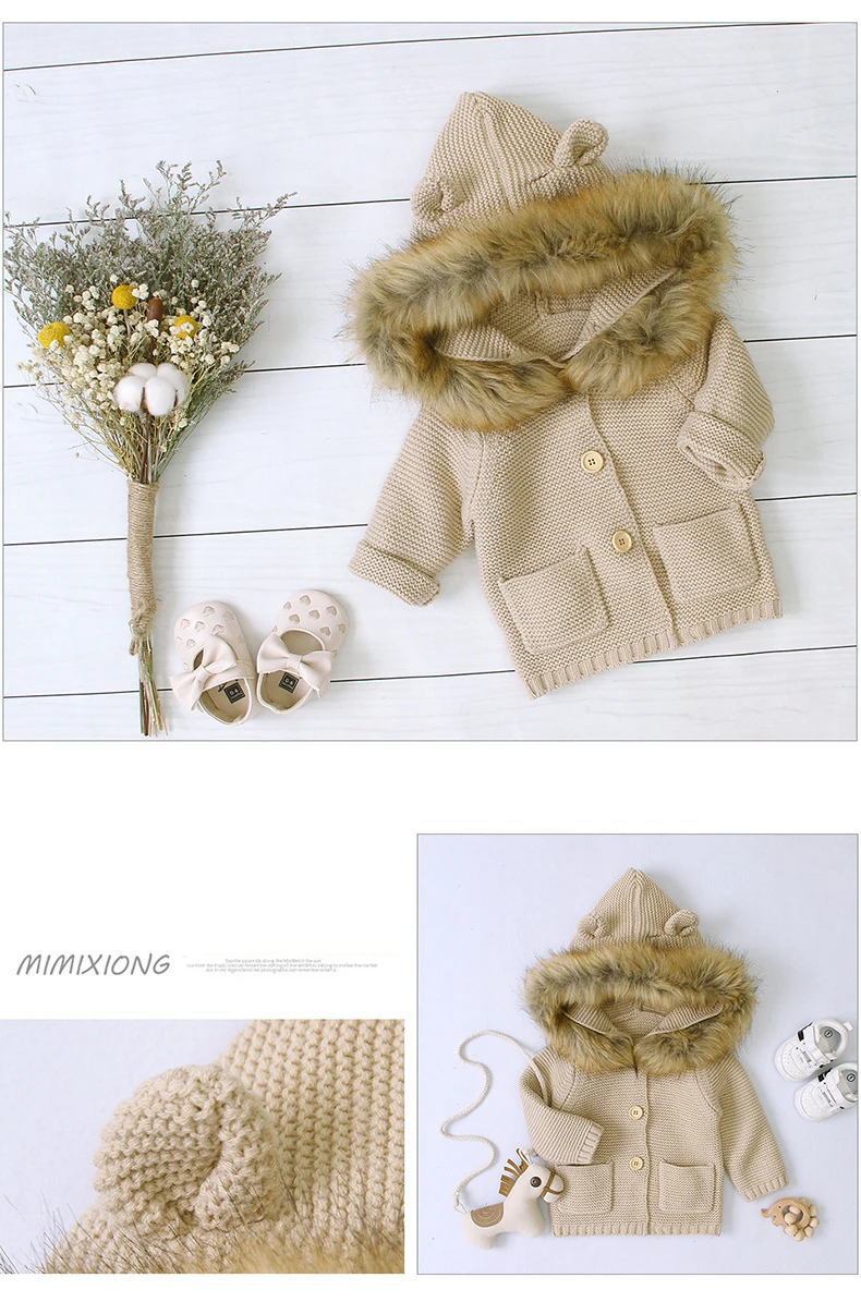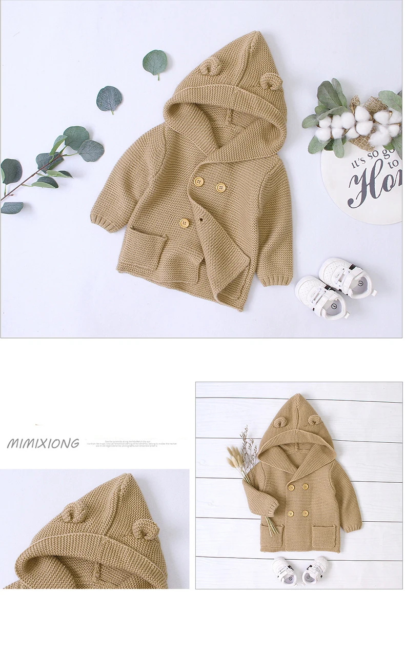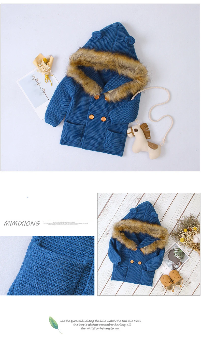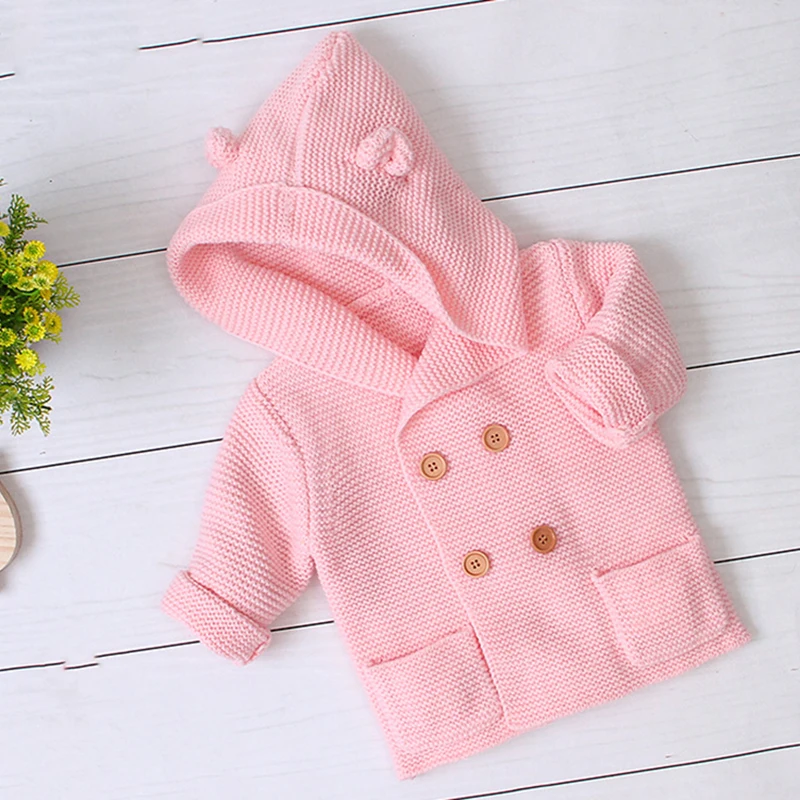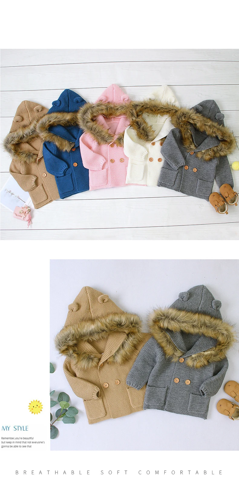 Вязаный кардиган для маленьких мальчиков, зимние теплые свитера для новорожденных, модное пальто с капюшоном и длинным рукавом, детская одежда, наряды