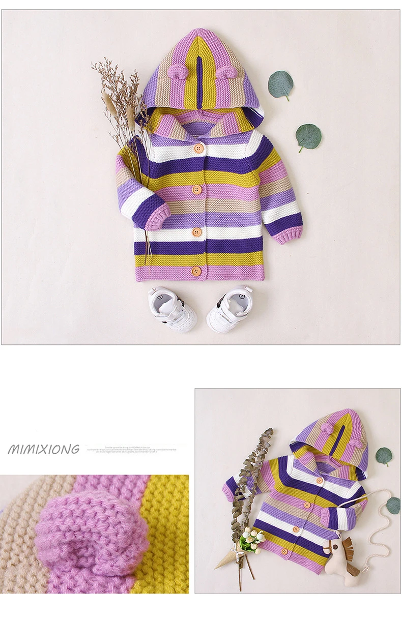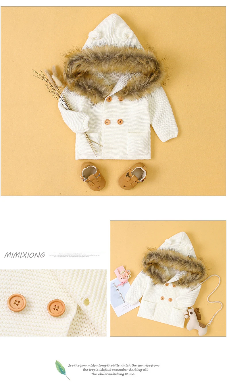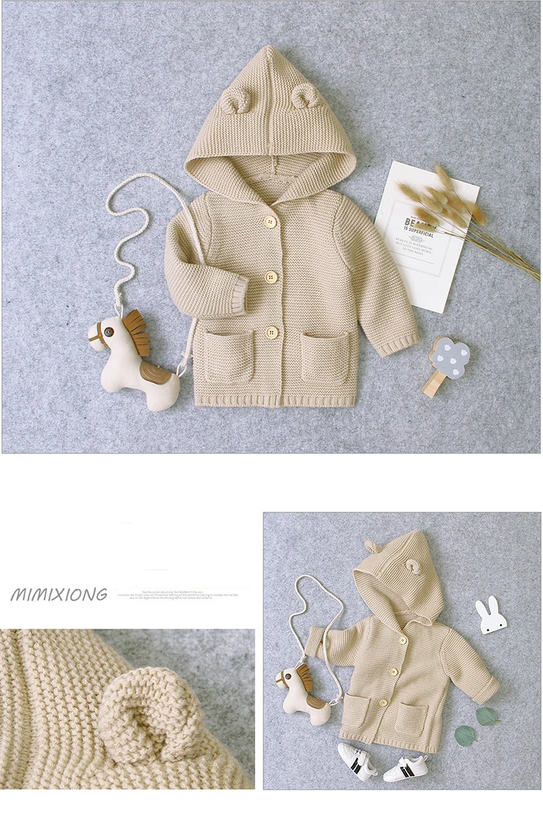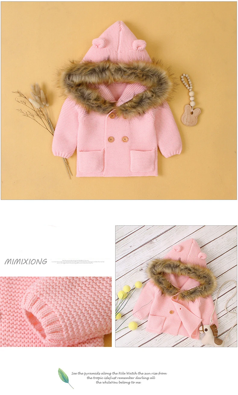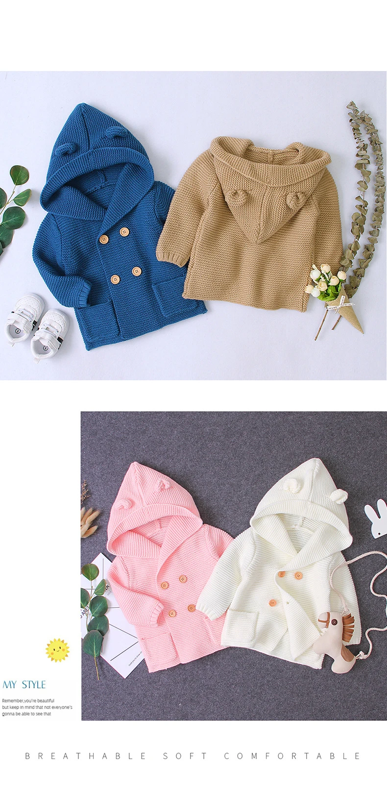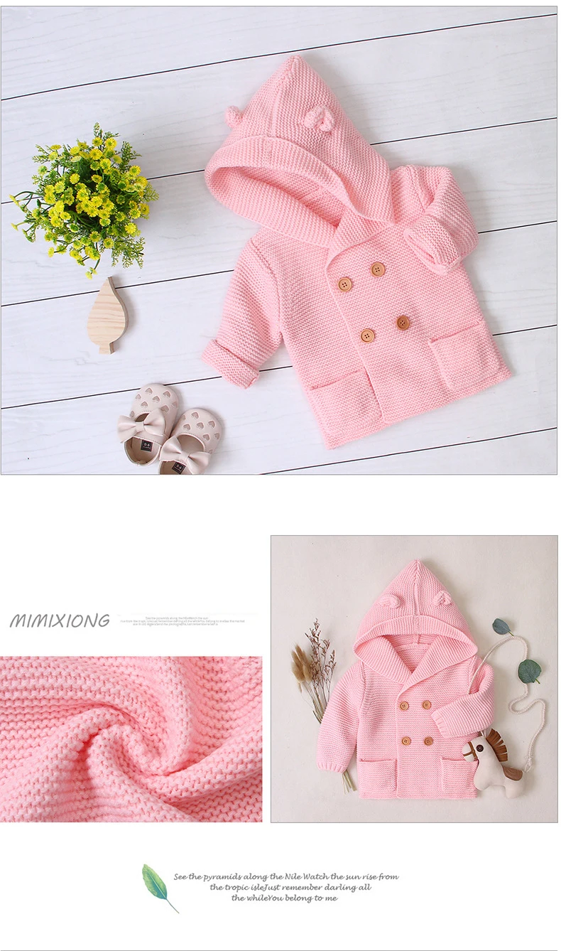 Вязаный кардиган для маленьких мальчиков, зимние теплые свитера для новорожденных, модное пальто с капюшоном и длинным рукавом, детская одежда, наряды