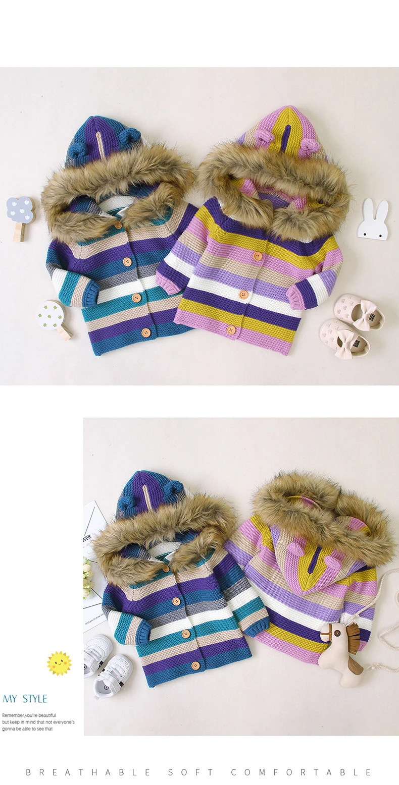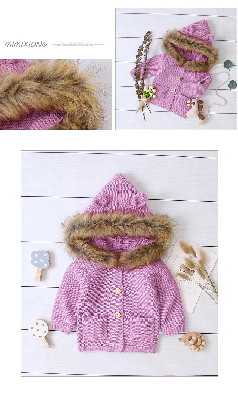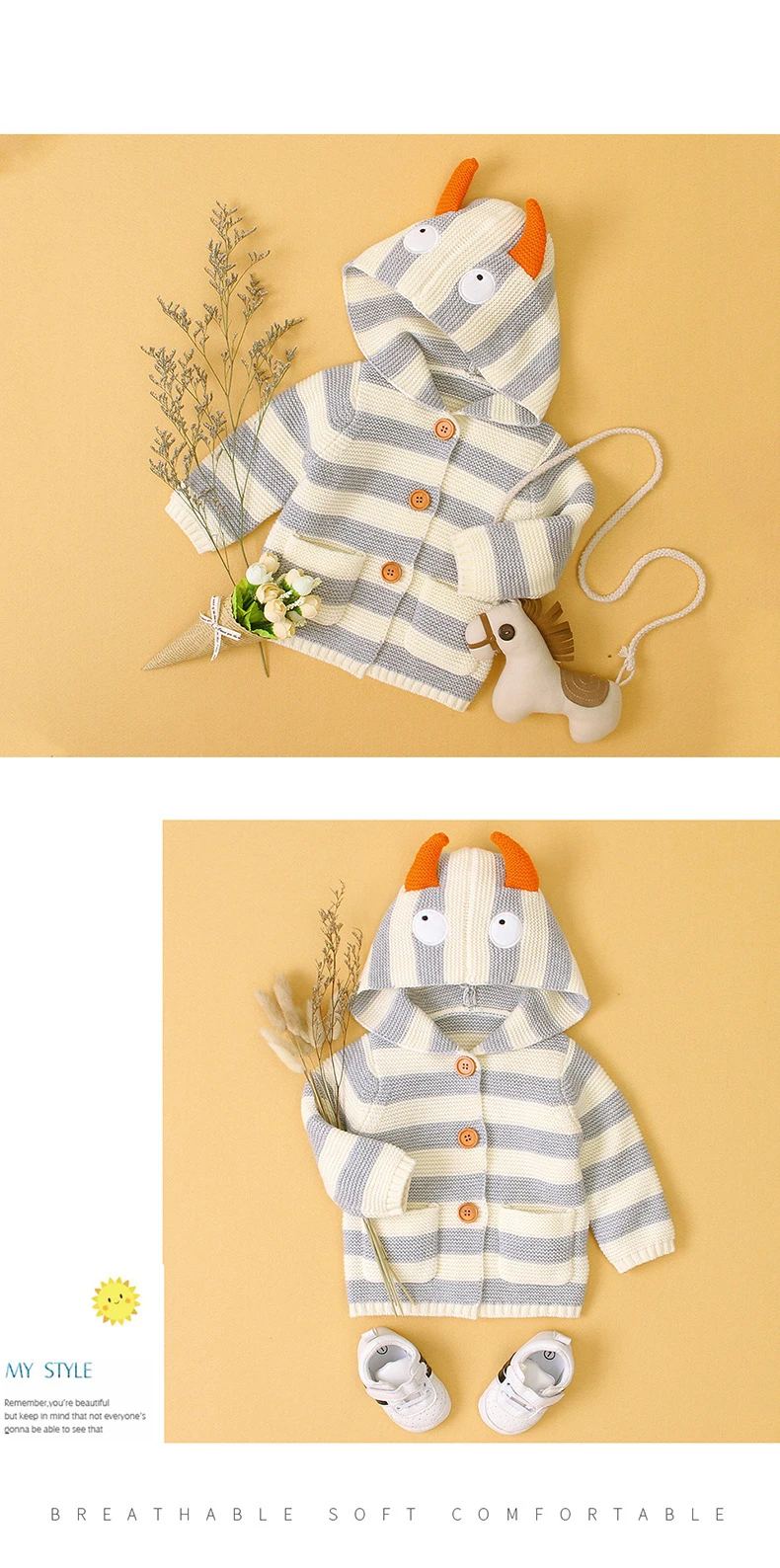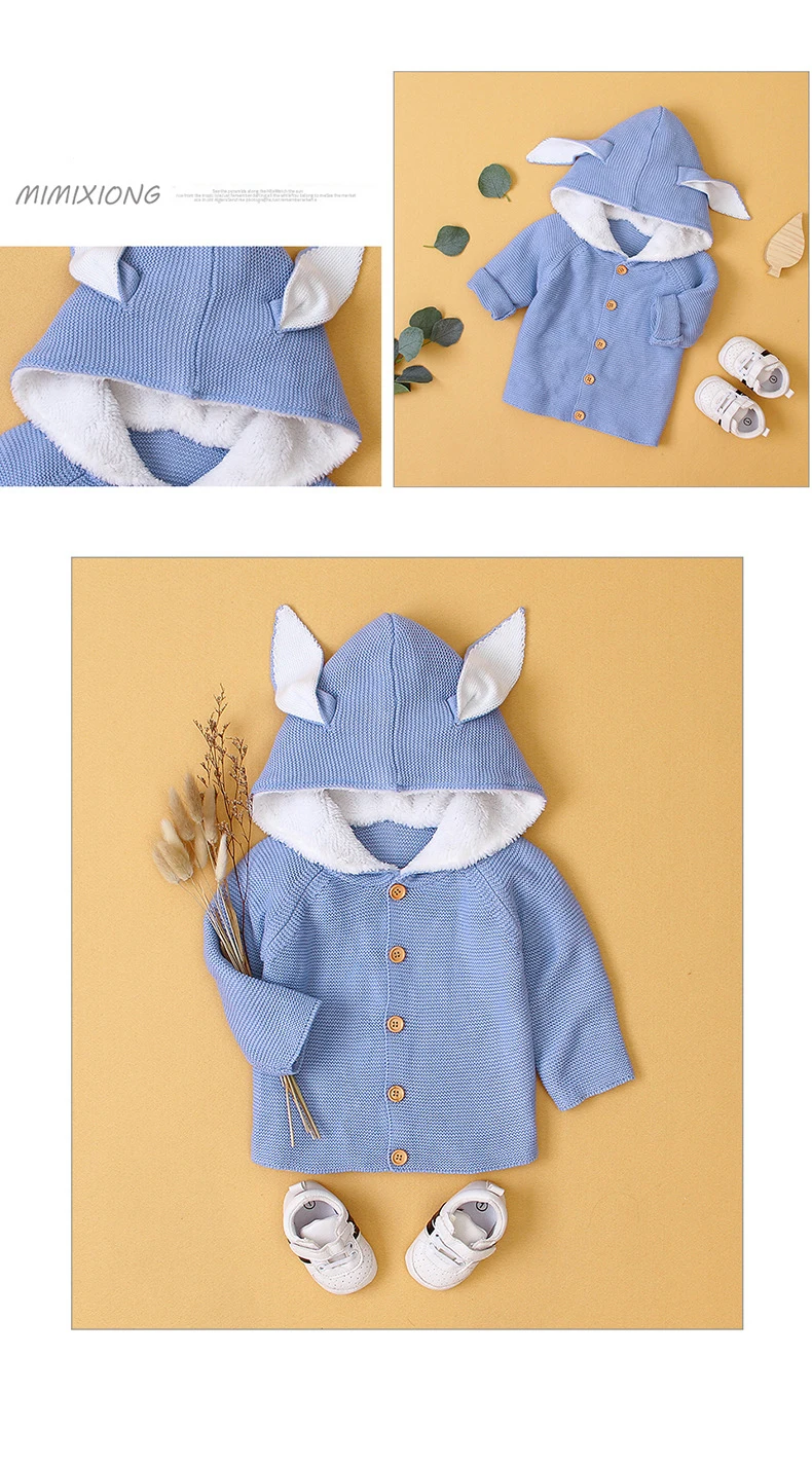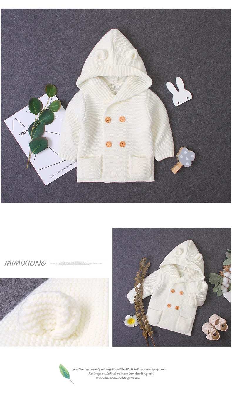 Вязаный кардиган для маленьких мальчиков, зимние теплые свитера для новорожденных, модное пальто с капюшоном и длинным рукавом, детская одежда, наряды