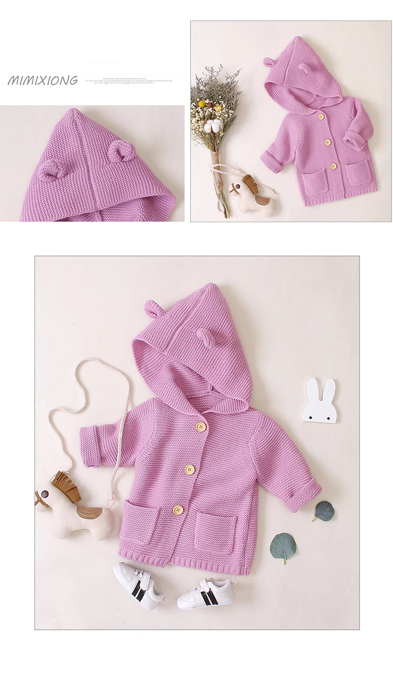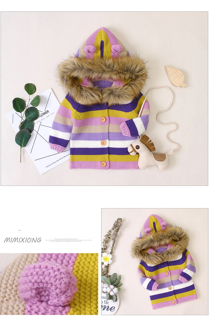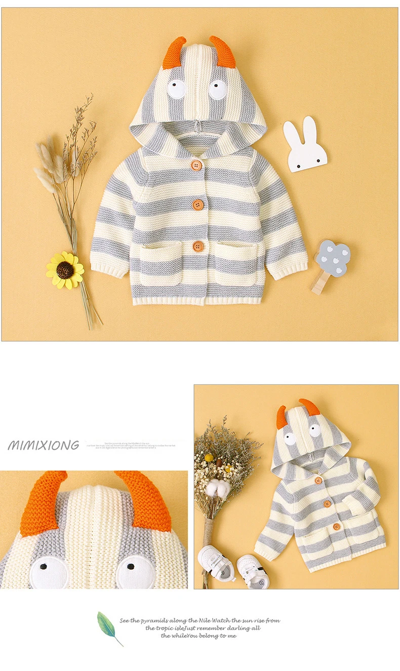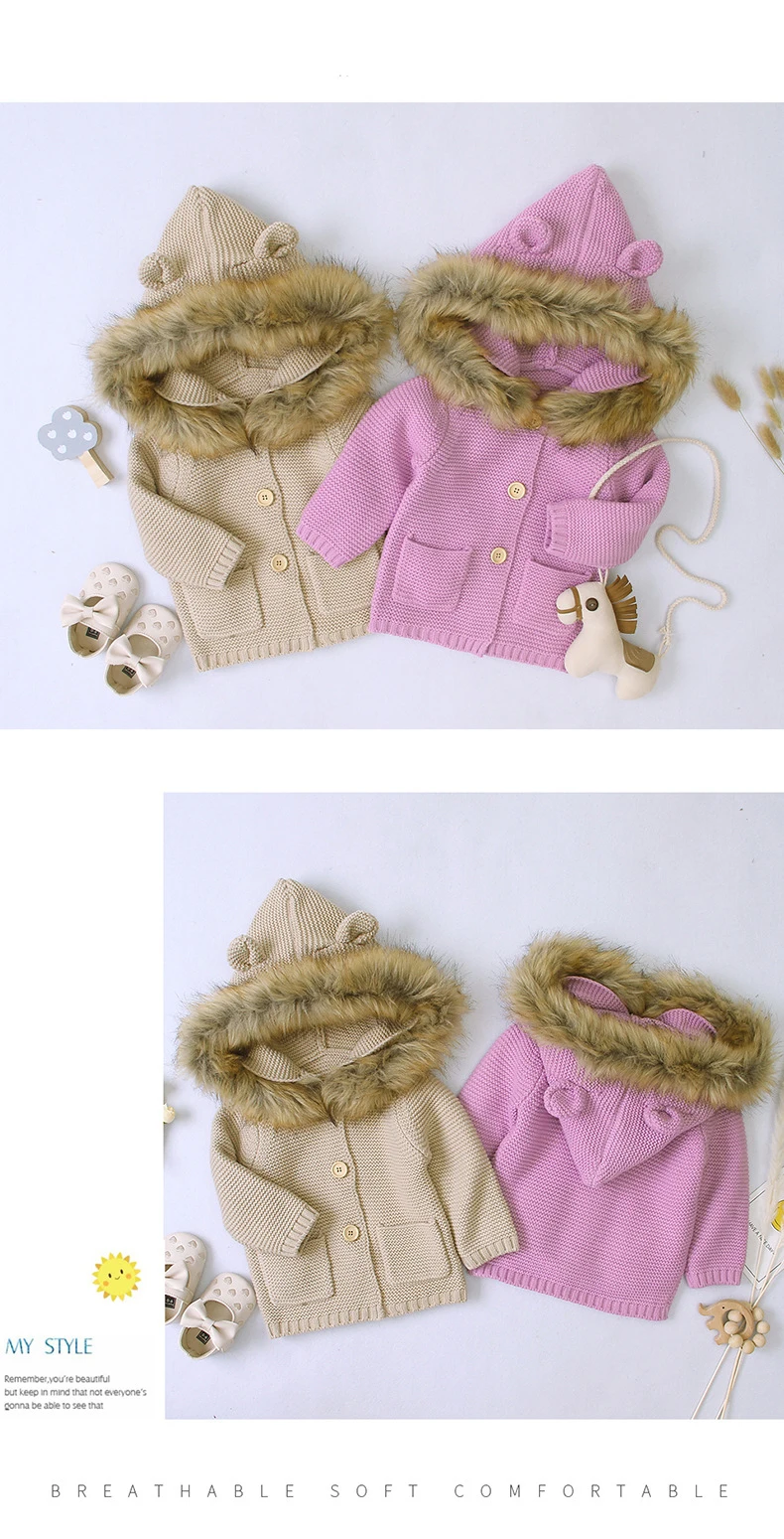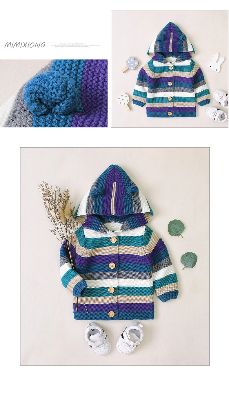 Вязаный кардиган для маленьких мальчиков, зимние теплые свитера для новорожденных, модное пальто с капюшоном и длинным рукавом, детская одежда, наряды
